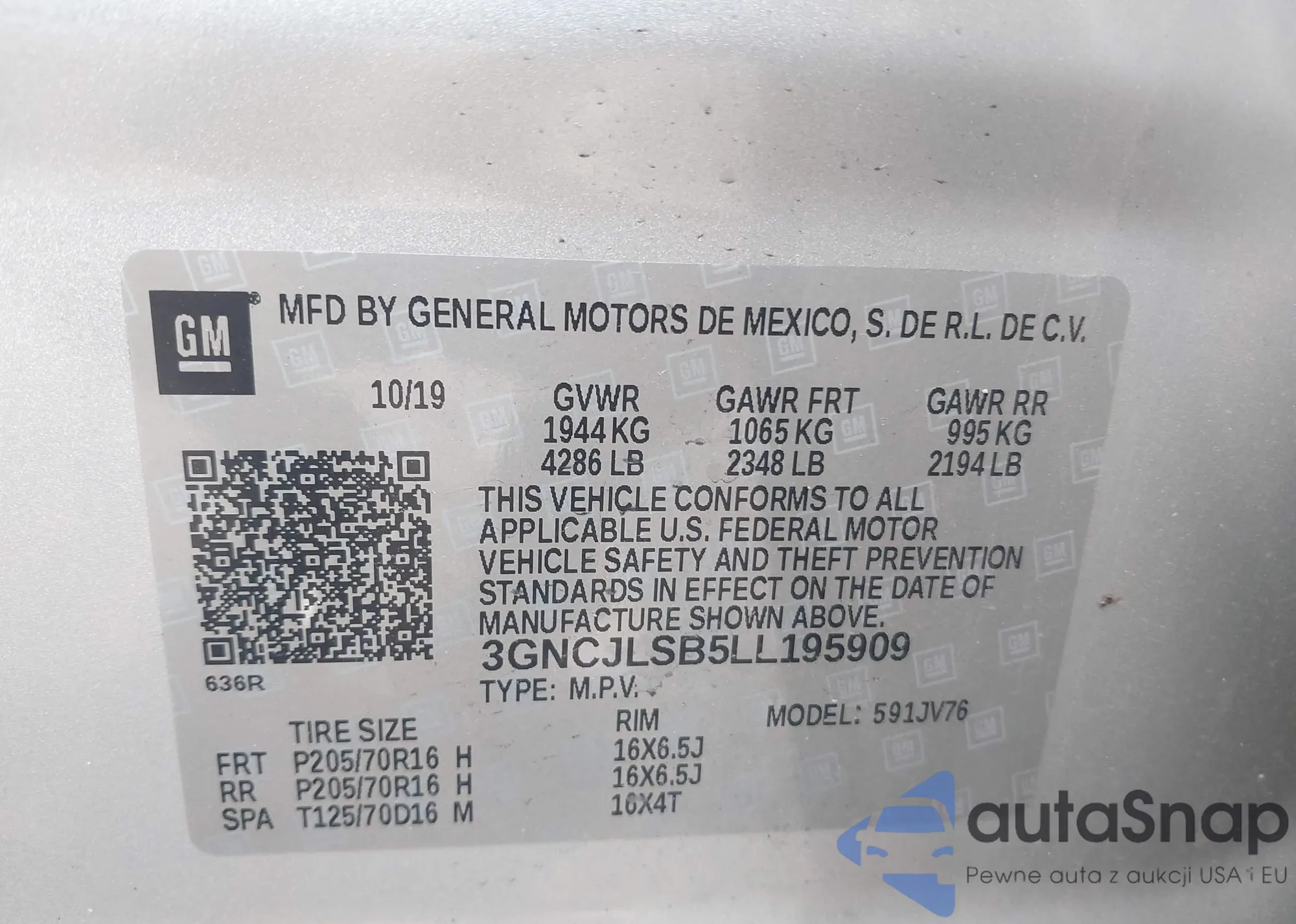 VIN: 3GNCJLSB5LL195909