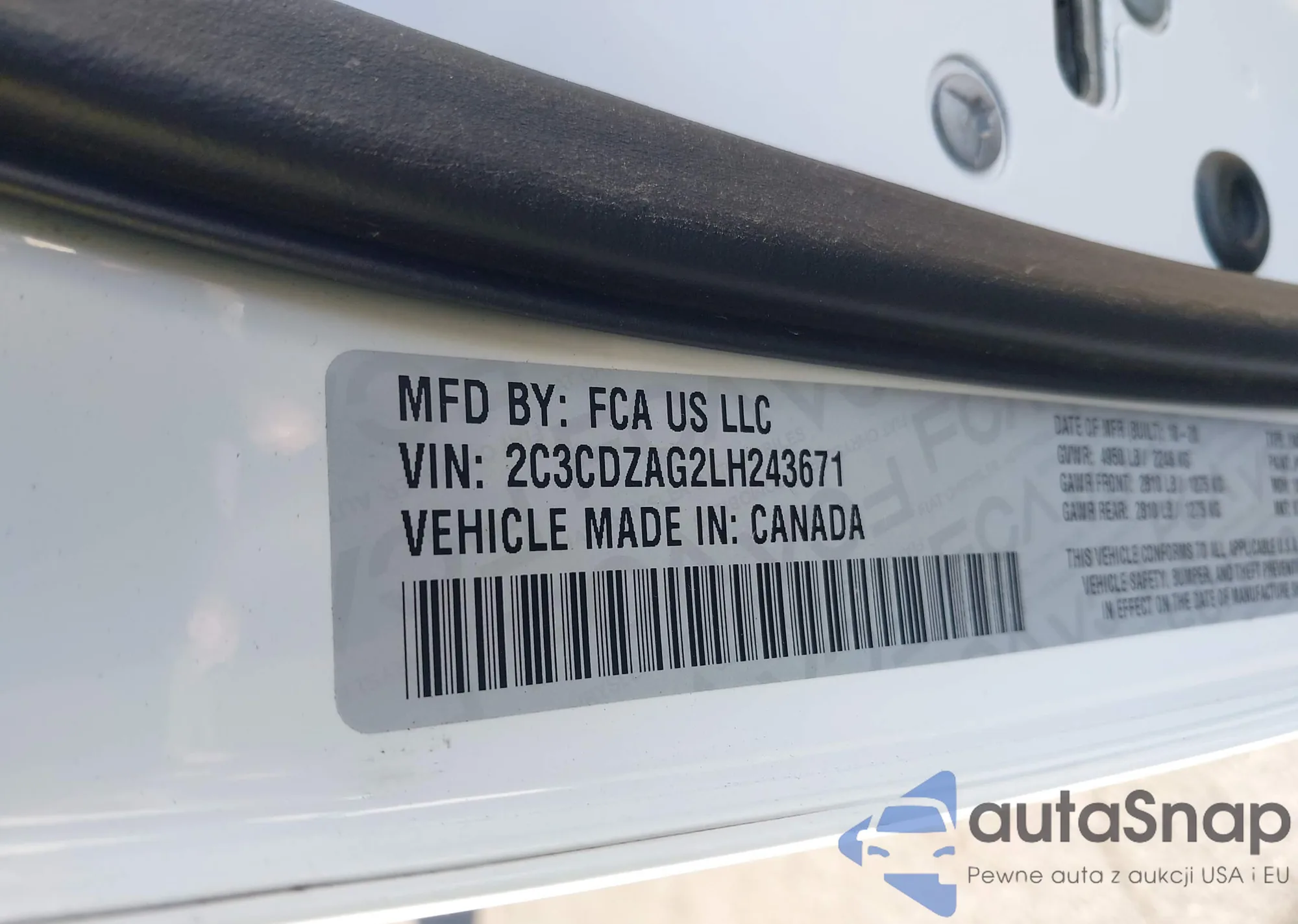 • VIN: 2C3CDZAG2LH243671