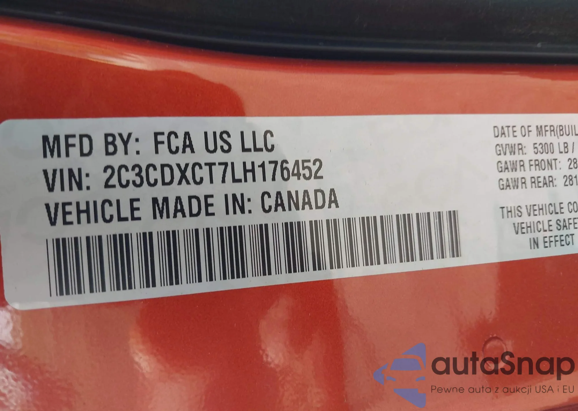 • VIN: 2C3CDXCT7LH176452