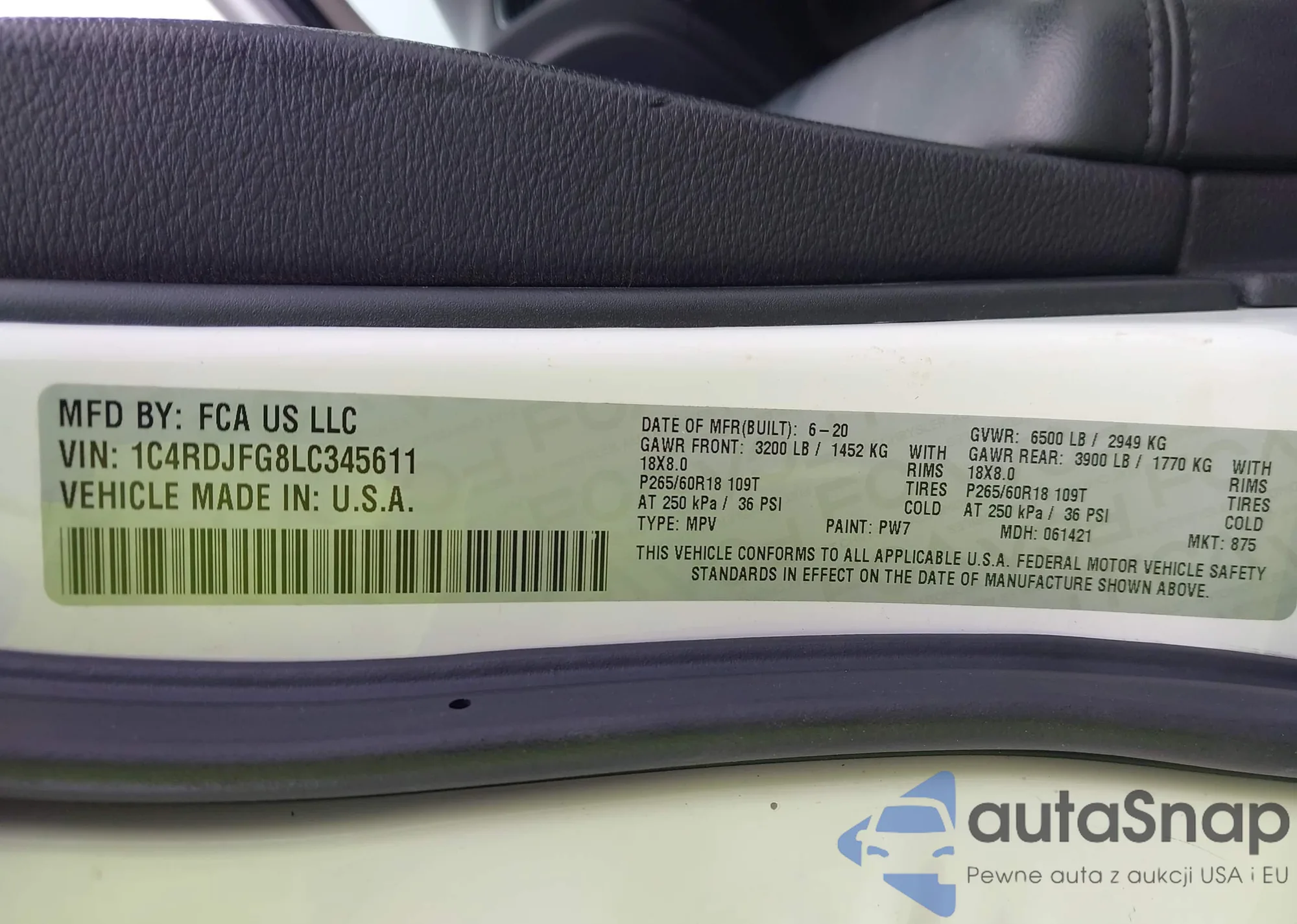 VIN: 1C4RDJFG8LC345611