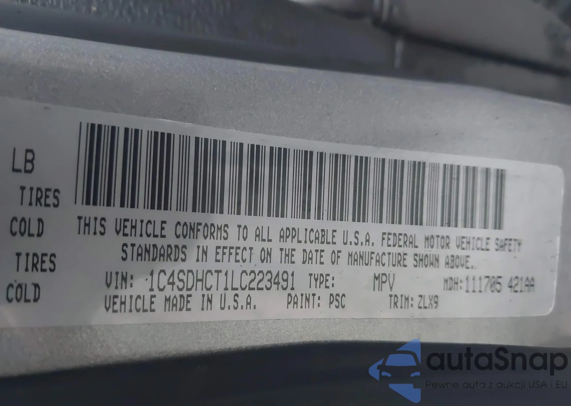 VIN: 1C4SDHCT1LC223491