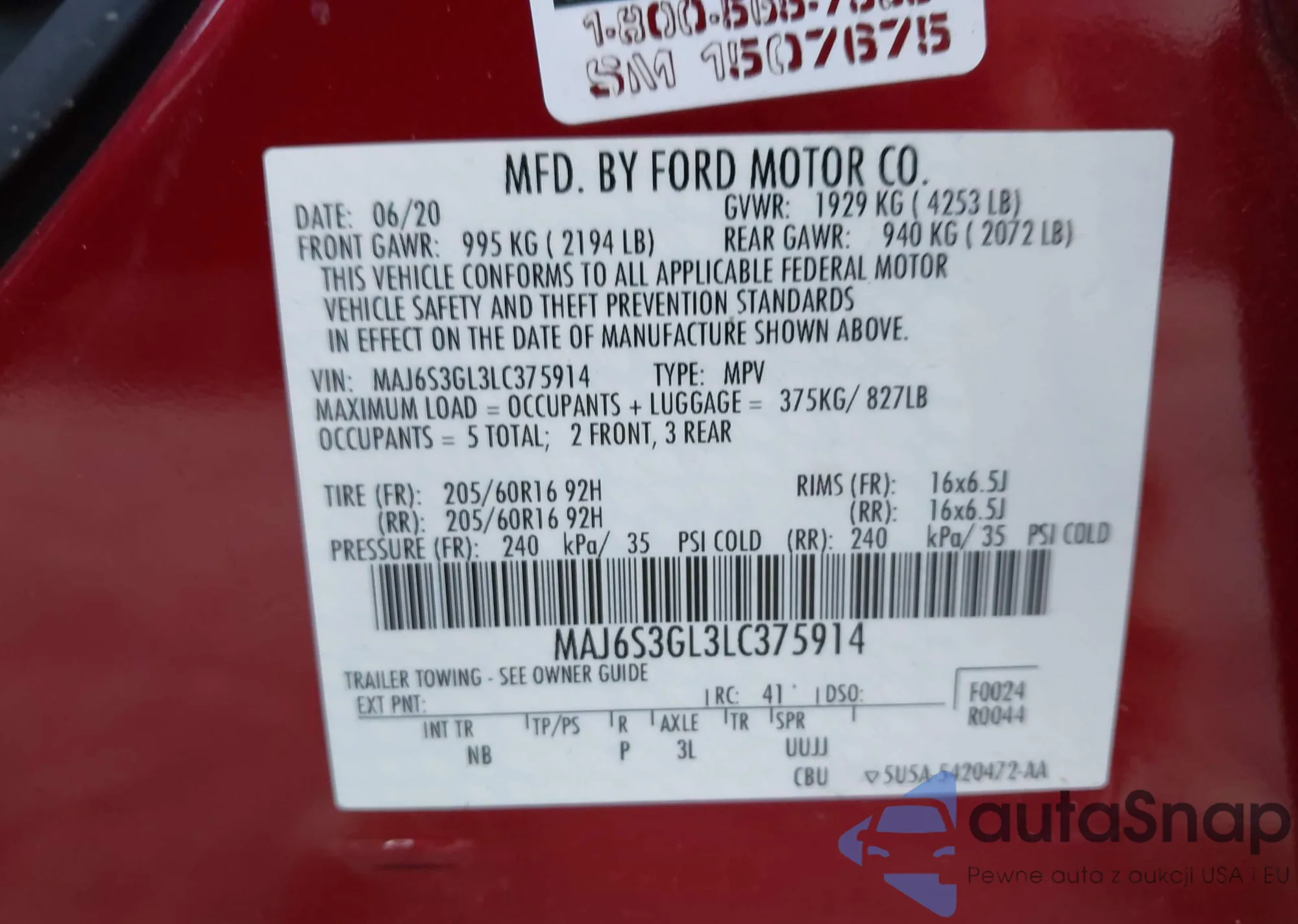 • VIN: MAJ6S3GL3LC375914
