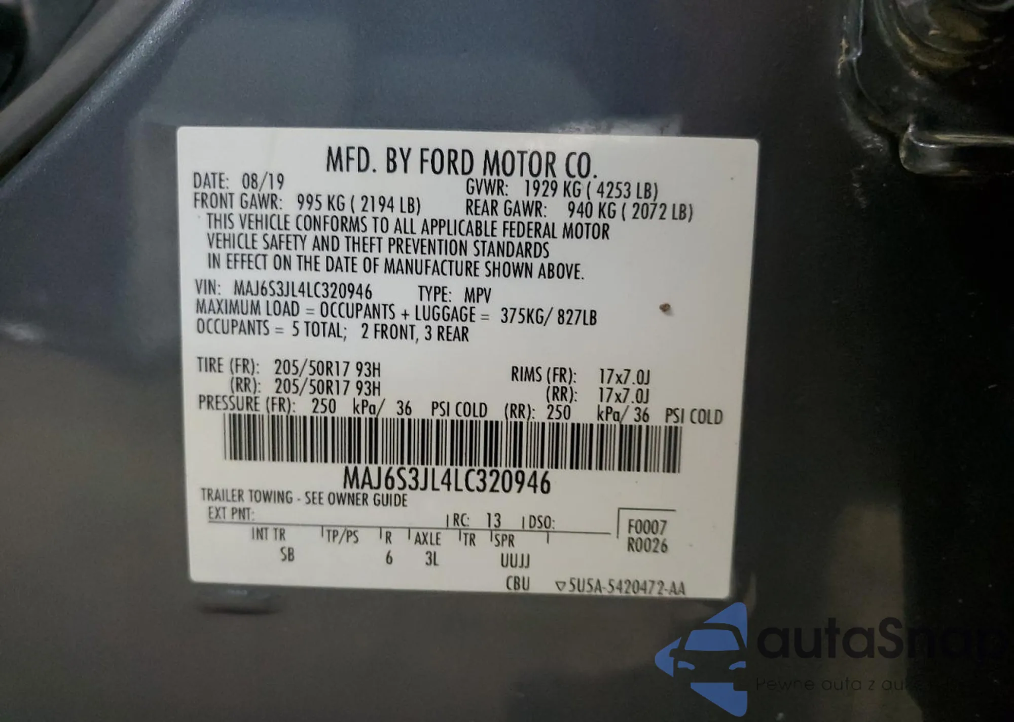 VIN: MAJ6S3JL4LC320946