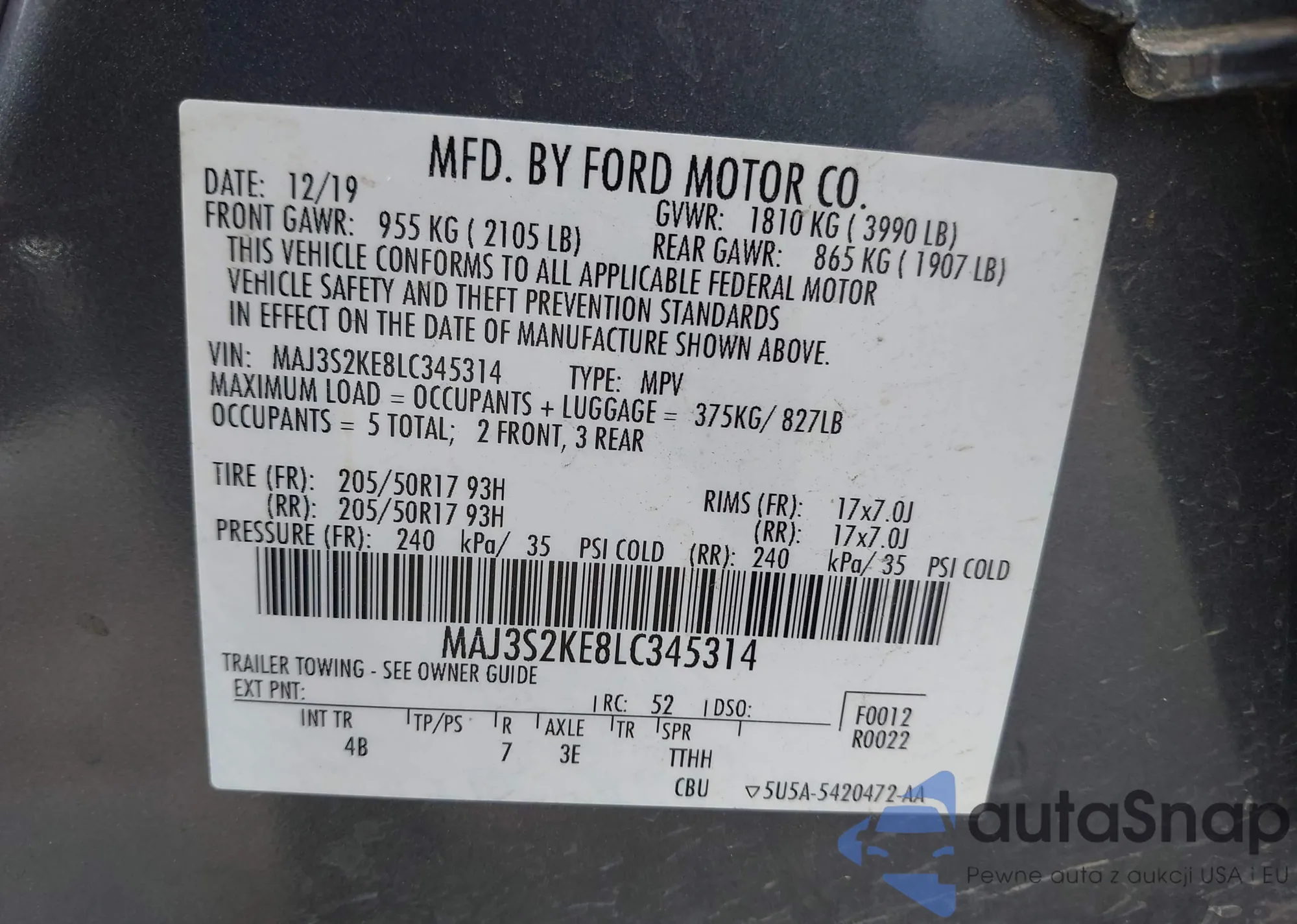 VIN: MAJ3S2KE8LC345314