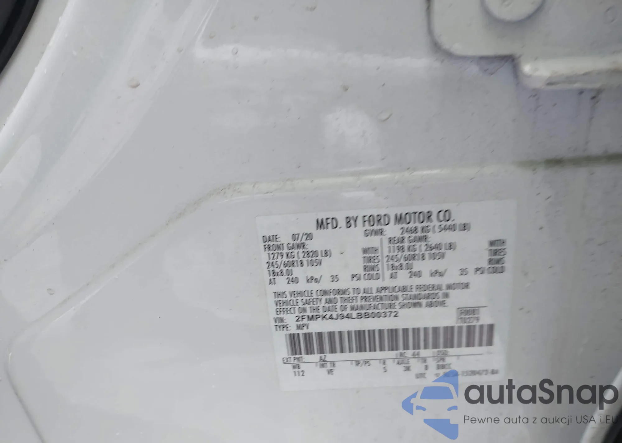VIN: 2FMPK4J94LBB00372