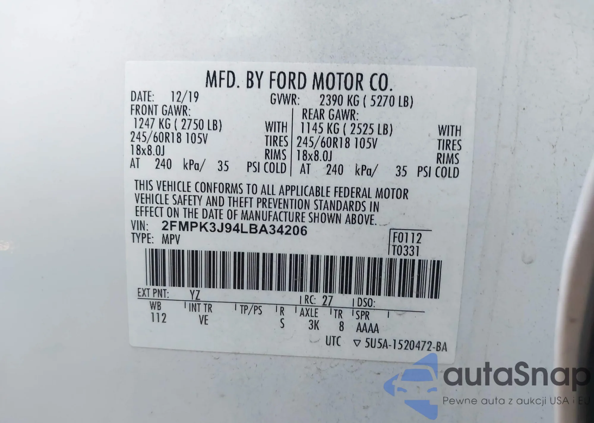 VIN: 2FMPK3J94LBA34206
