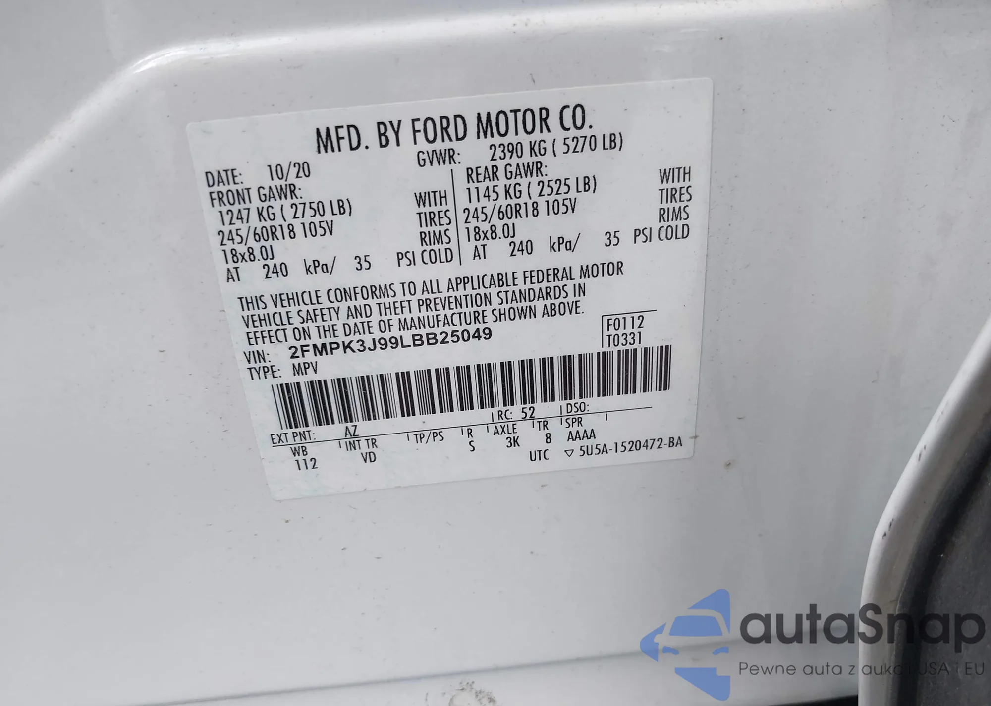 VIN: 2FMPK3J99LBB25049