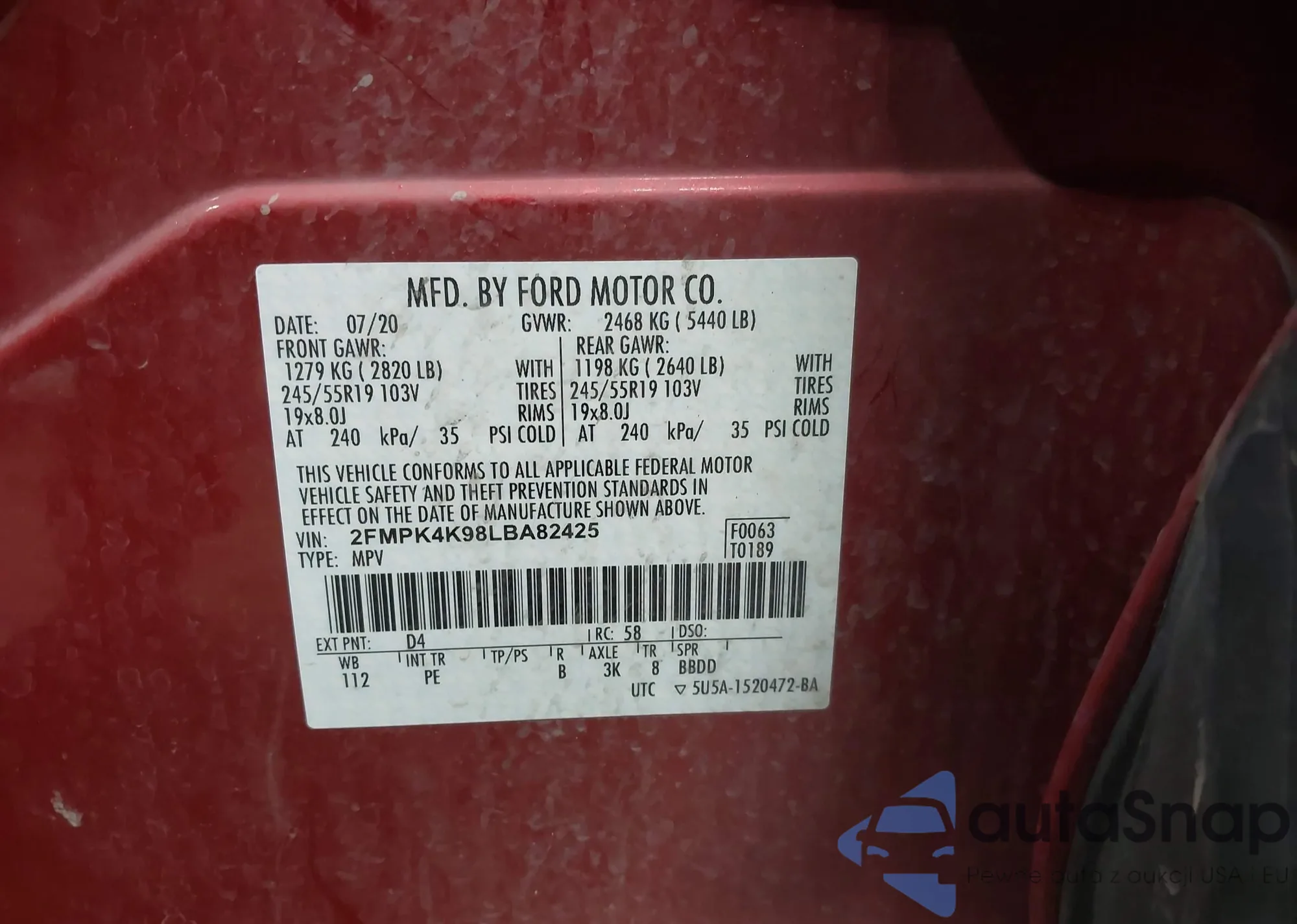VIN: 2FMPK4K98LBA82425