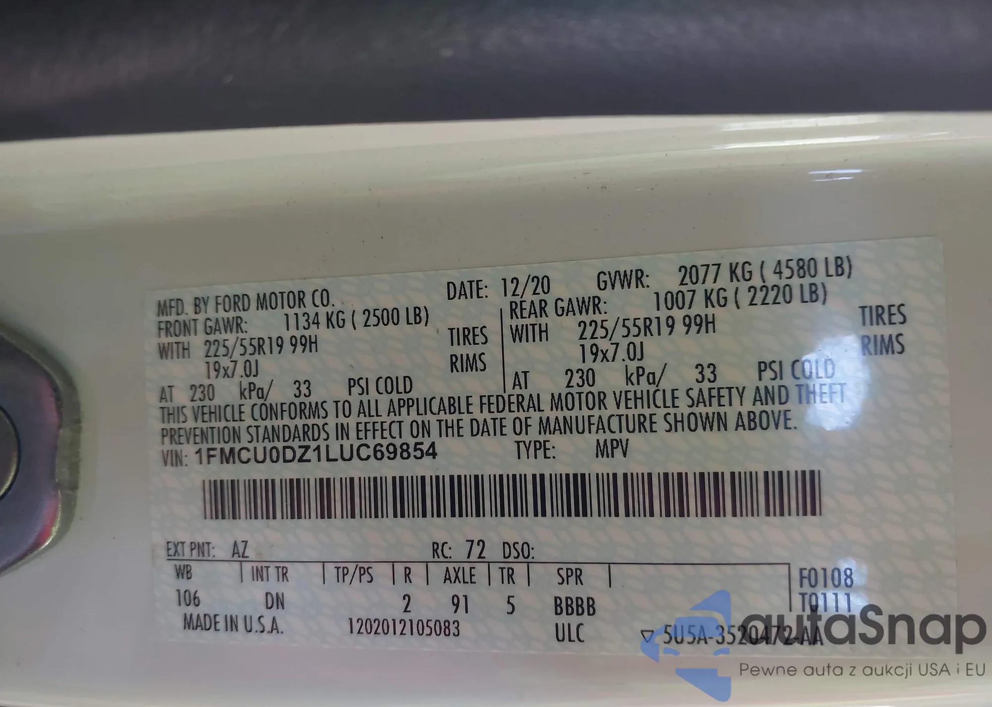VIN: 1FMCU0DZ1LUC69854