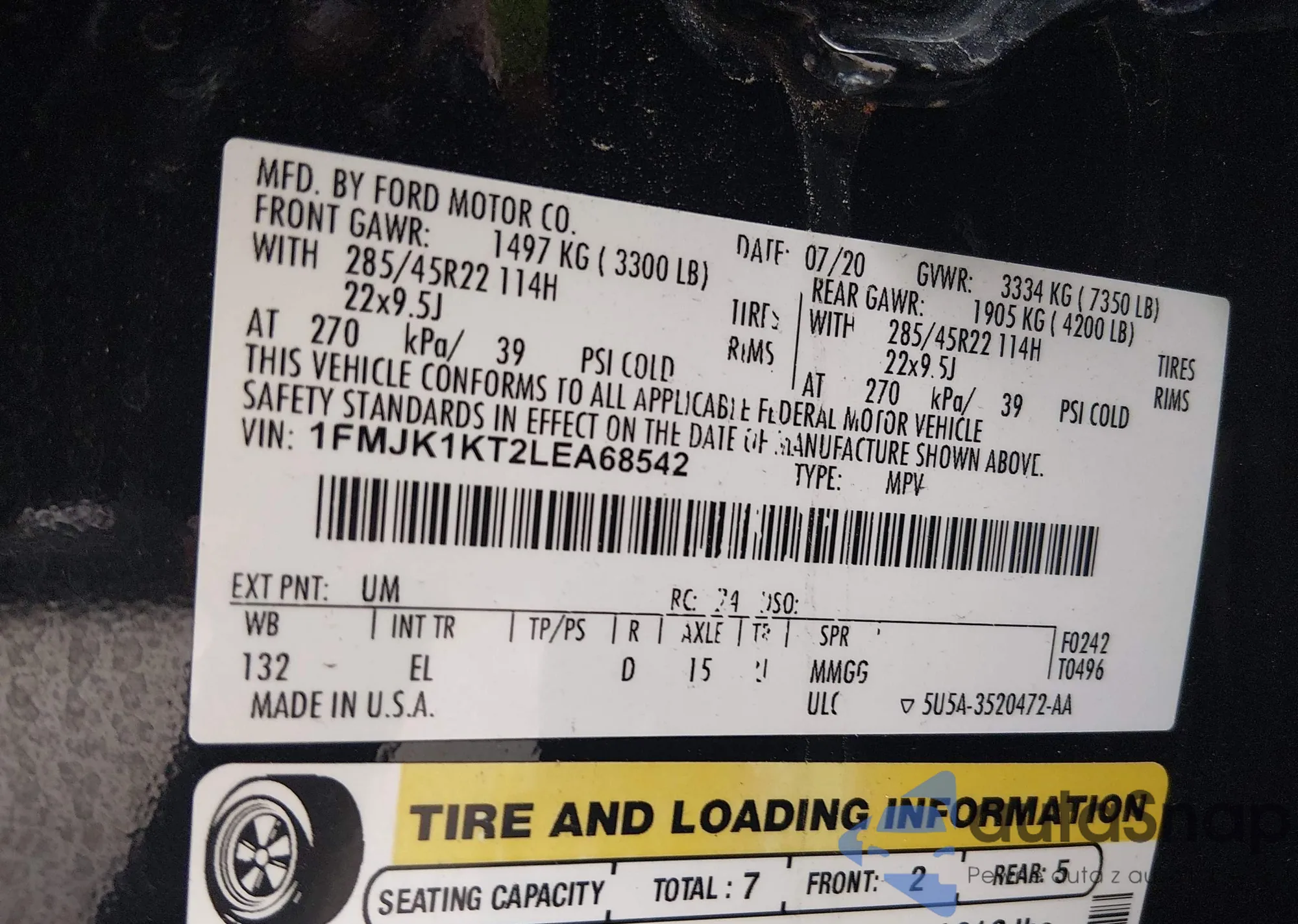 • VIN: 1FMJK1KT2LEA68542