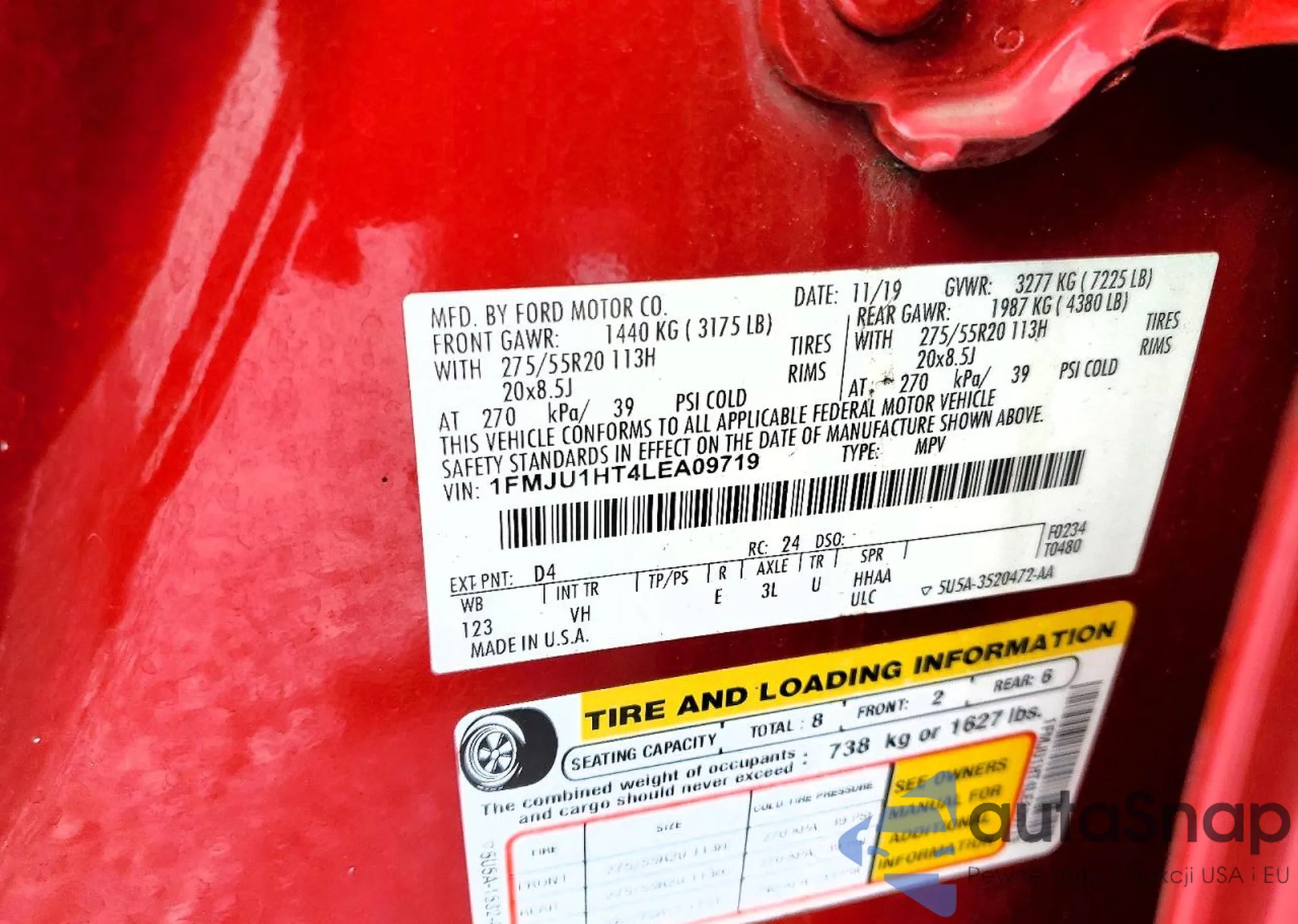 Автомобиль Ford Expedition 2020 (VIN 1FMJU1HT4LEA09719) имеет документы, препятствующие регистрации. Могут возникнуть сложности при экспорте и регистрации. Обратитесь к экспертам AutaSnap для поиска альтернатив.