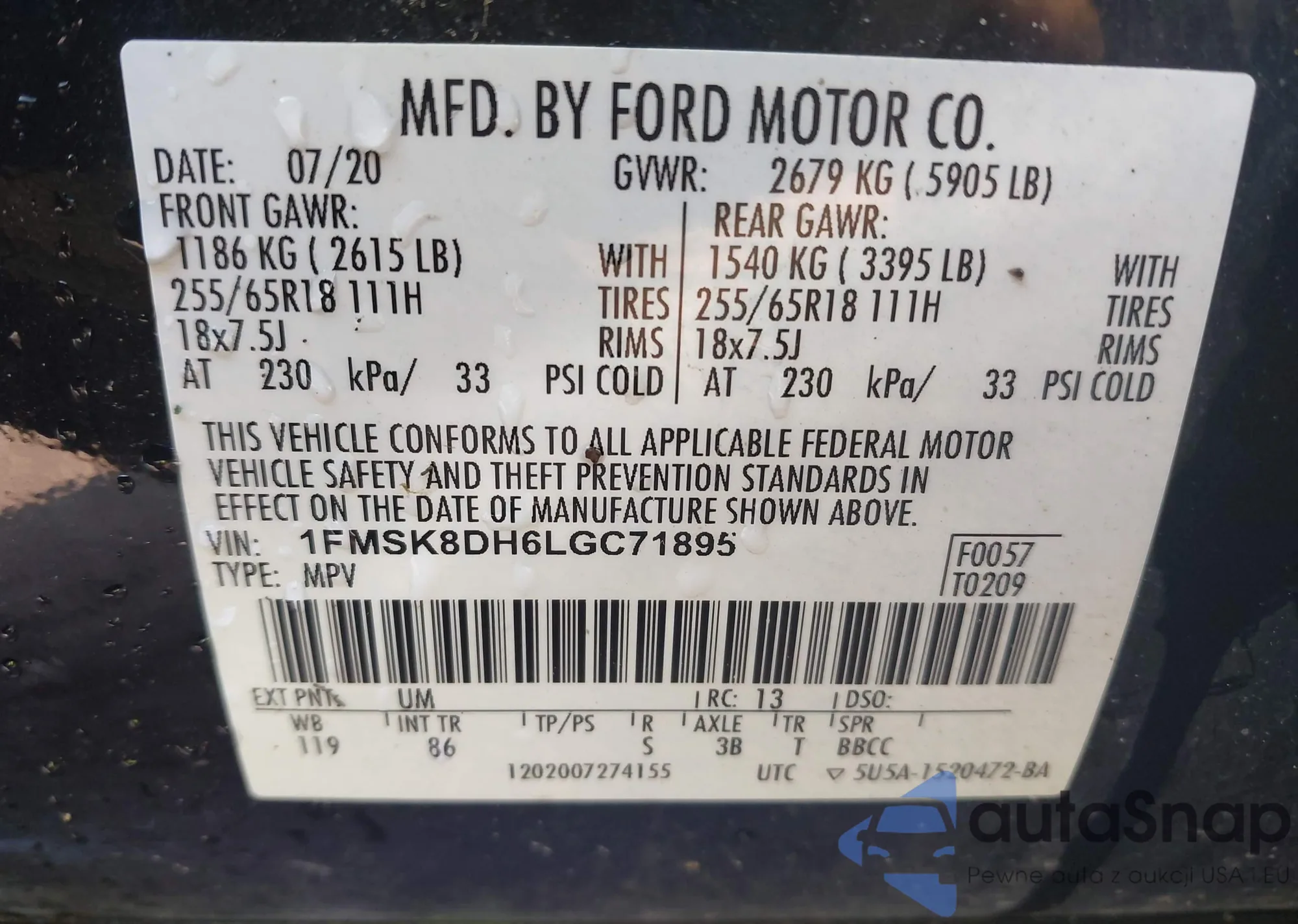 VIN: 1FMSK8DH6LGC71895