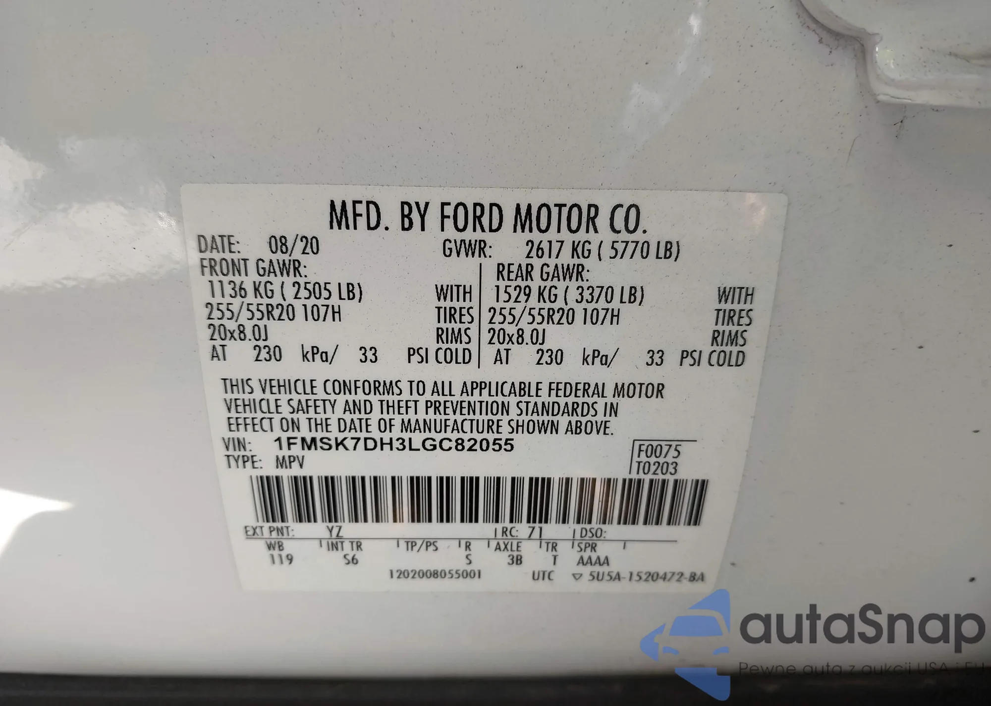 VIN: 1FMSK7DH3LGC82055