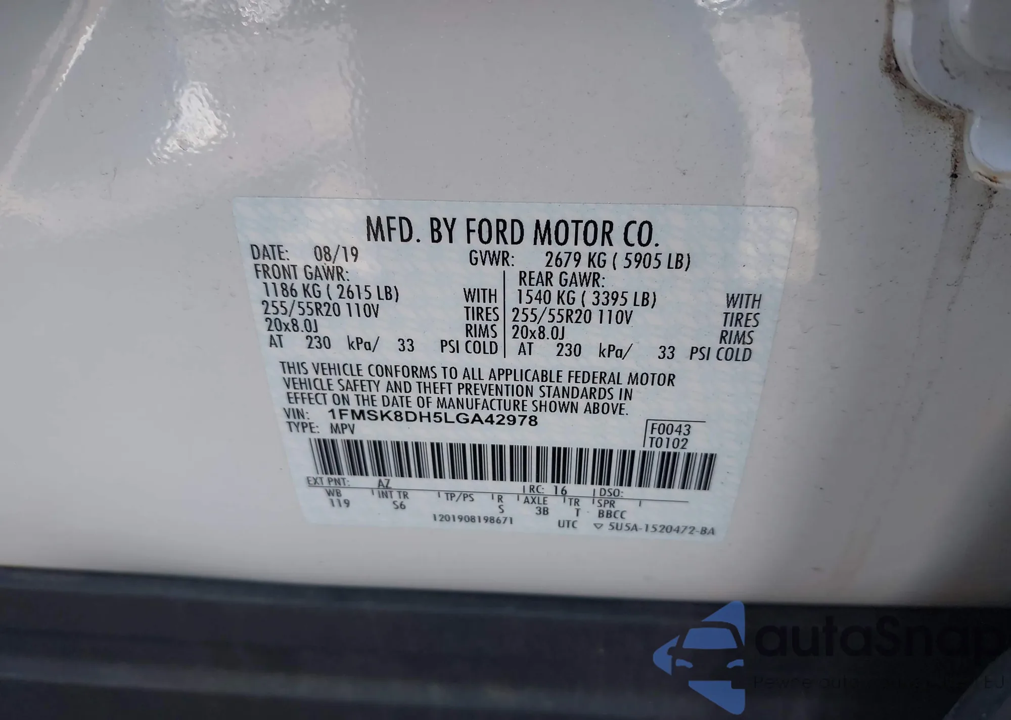 VIN: 1FMSK8DH5LGA42978
