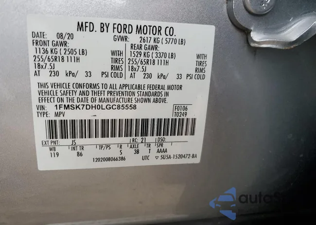 VIN: 1FMSK7DH0LGC85558