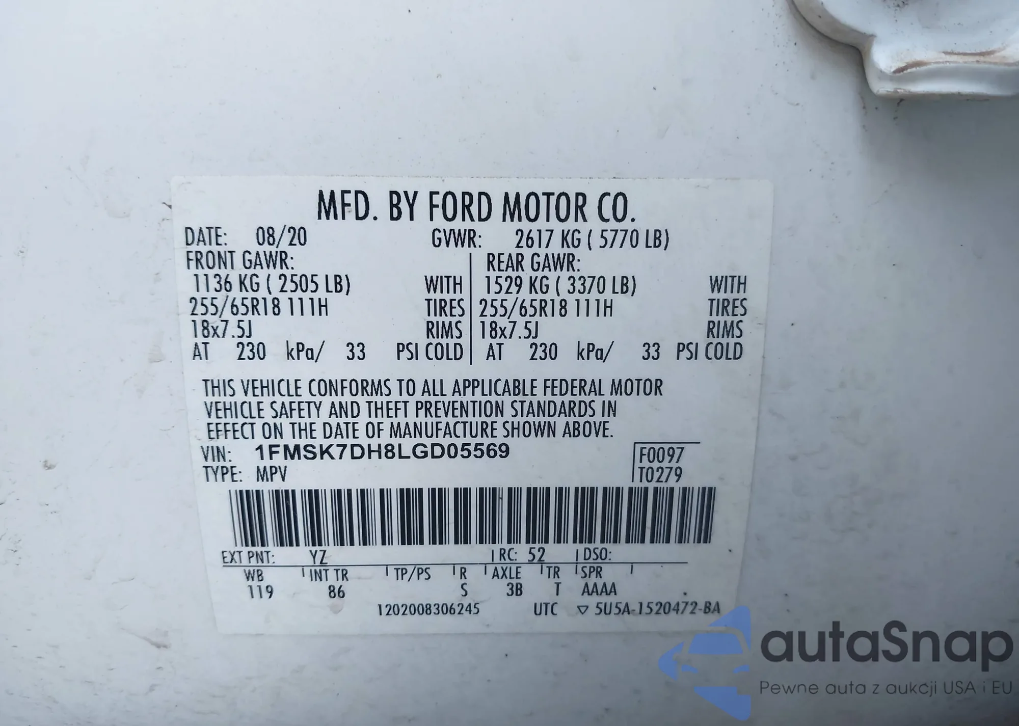 Автомобиль Ford Explorer 2020 (VIN 1FMSK7DH8LGD05569) ранее не участвовал в торгах. Документы чистые, пробег соответствует или ниже среднего по рынку. Продаётся страховой компанией — рекомендуем покупку. Доставка в порт займет около 6–8 недель.