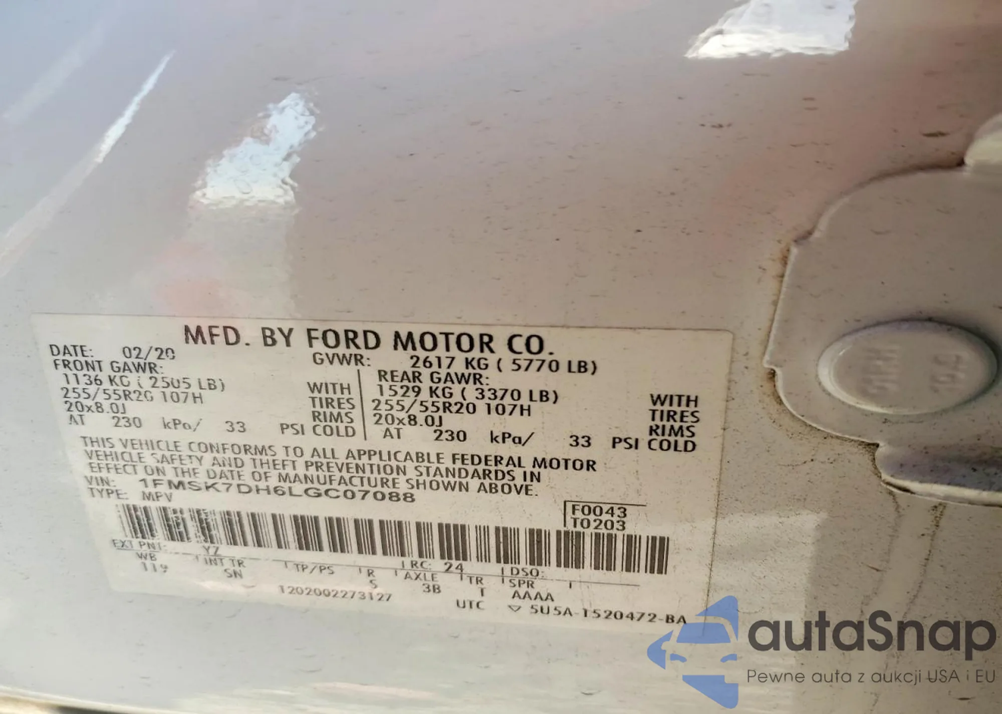 VIN: 1FMSK7DH6LGC07088