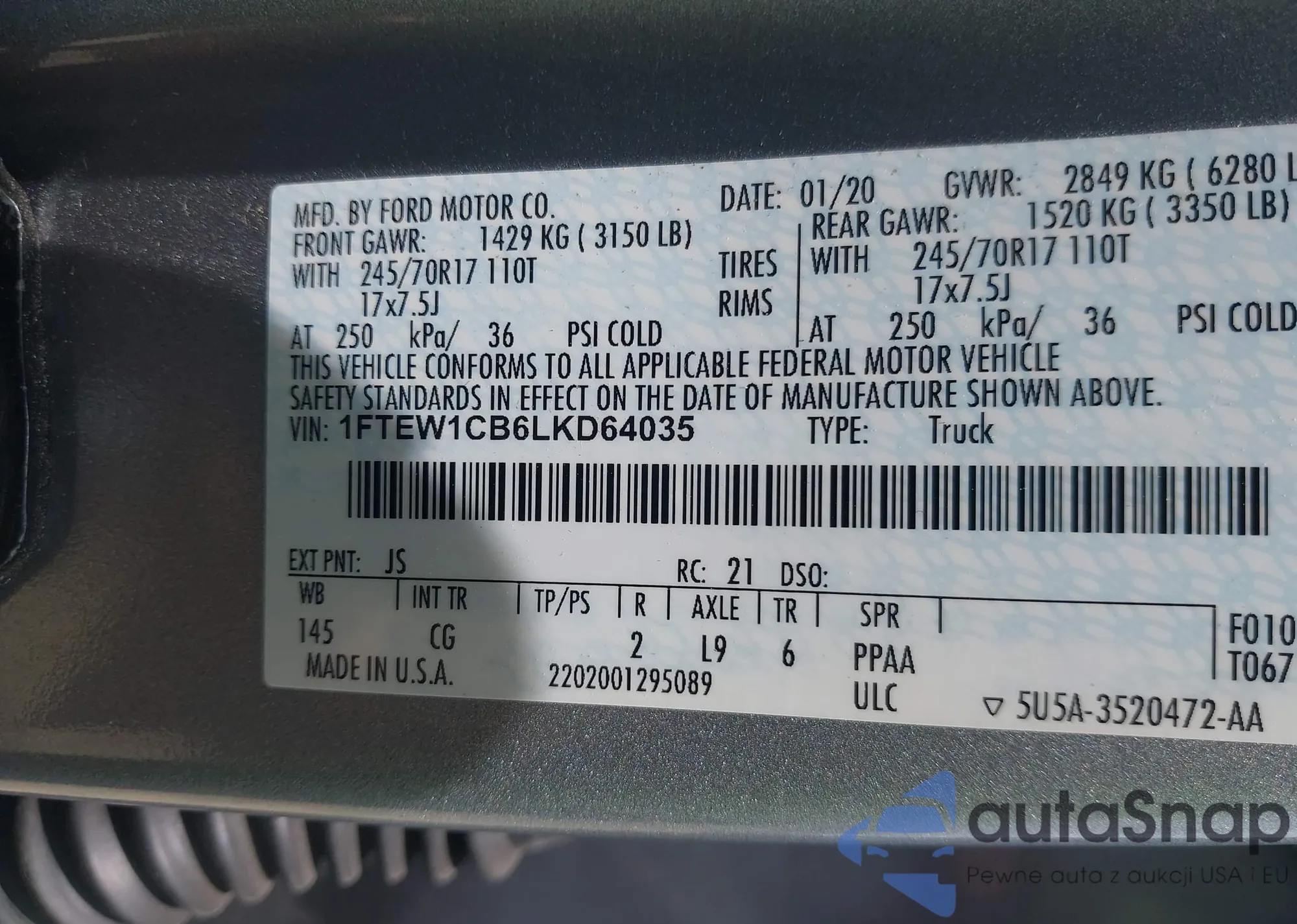VIN: 1FTEW1CB6LKD64035