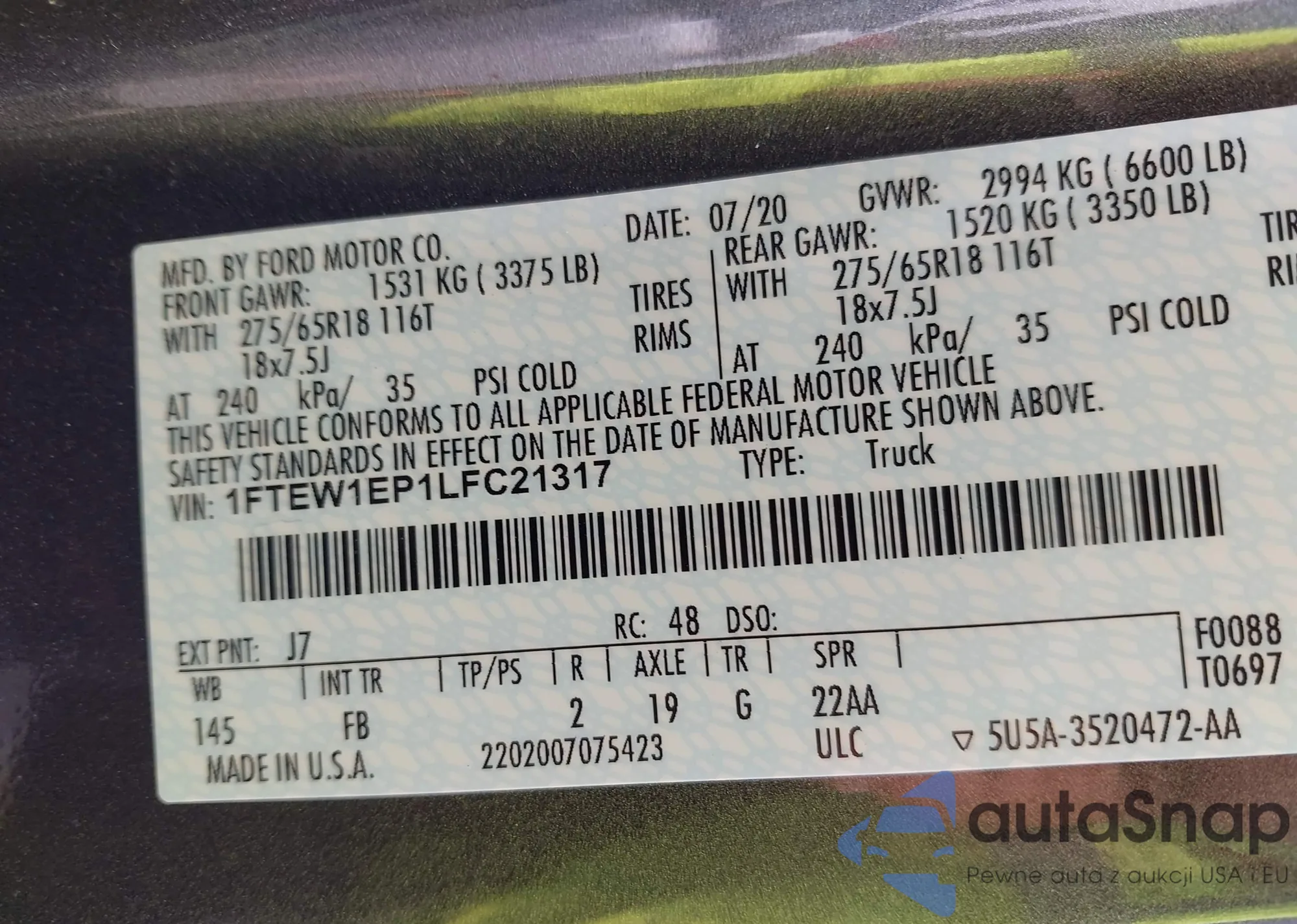 VIN: 1FTEW1EP1LFC21317
