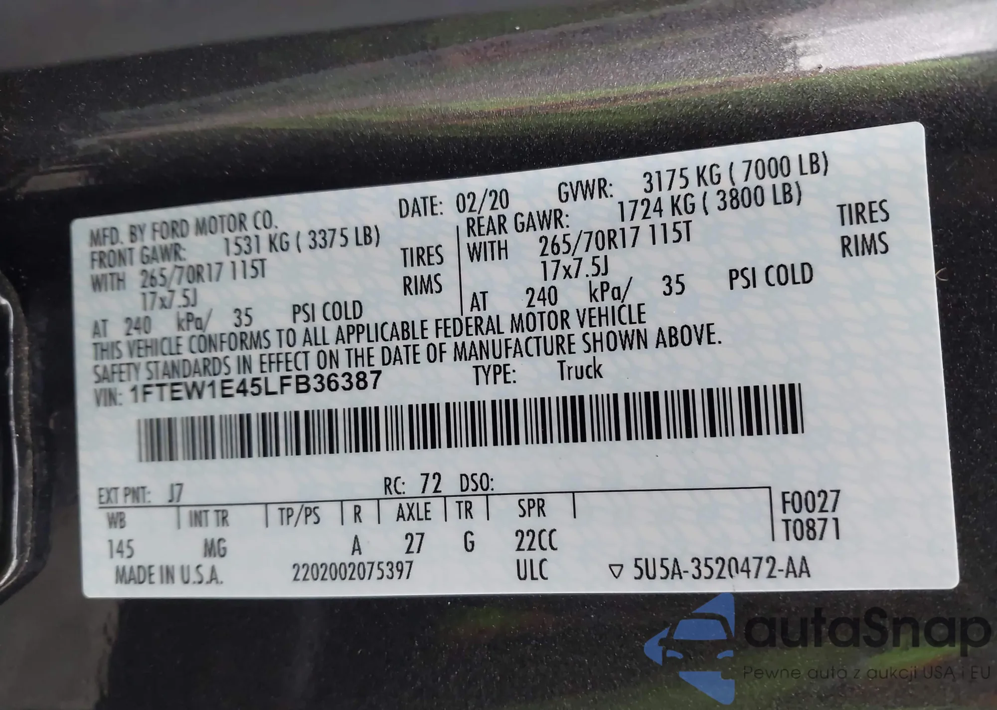 VIN: 1FTEW1E45LFB36387