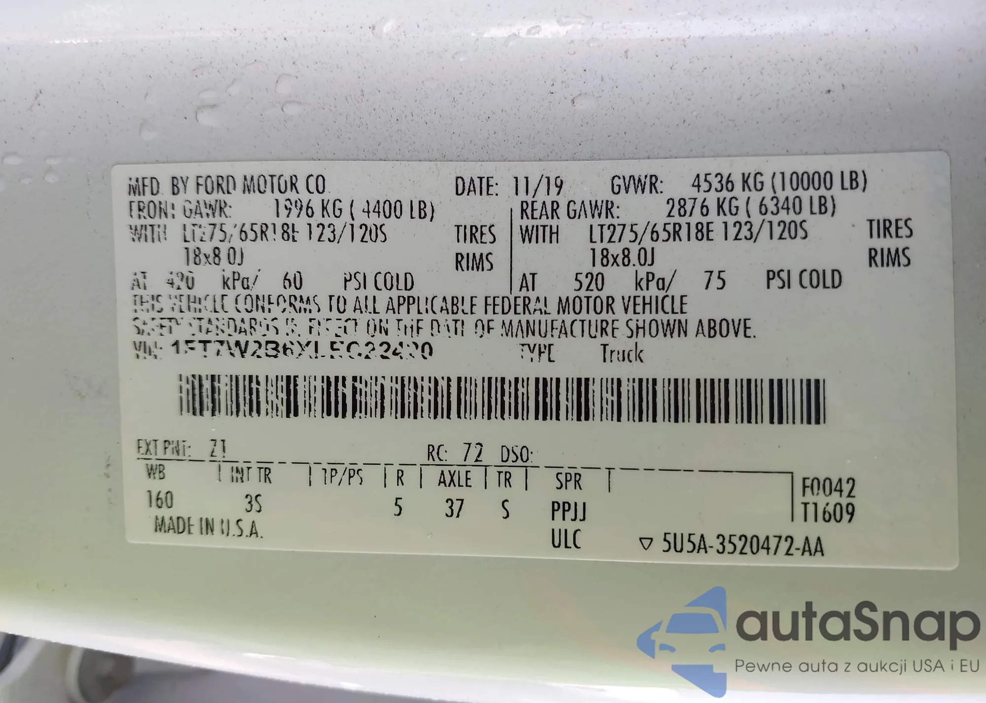 VIN: 1FT7W2B6XLEC22420