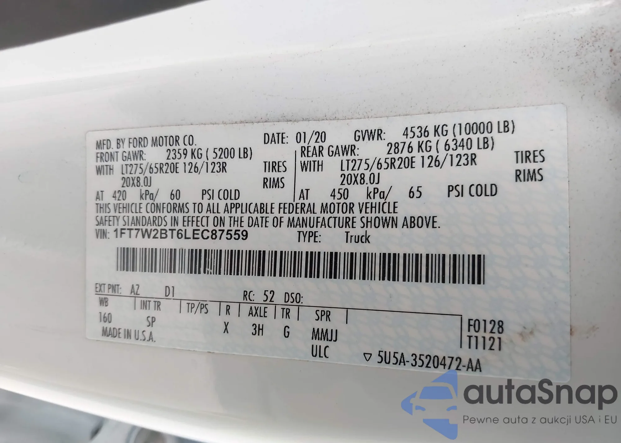 VIN: 1FT7W2BT6LEC87559