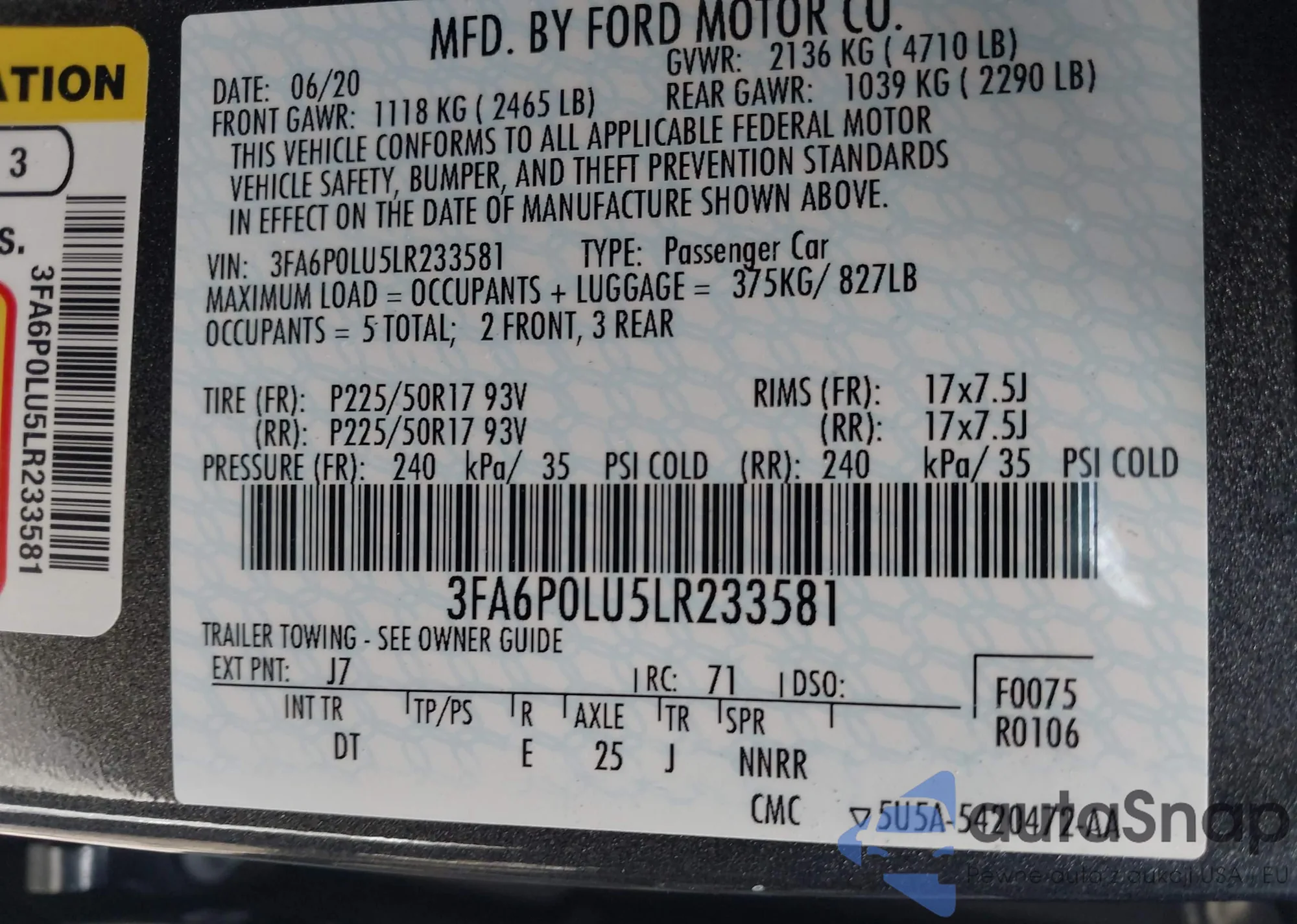 VIN: 3FA6P0LU5LR233581