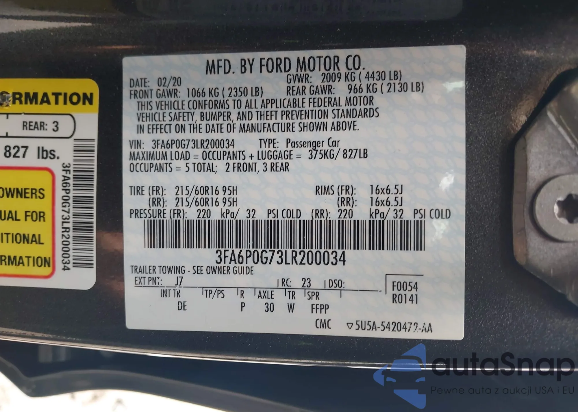 VIN: 3FA6P0G73LR200034