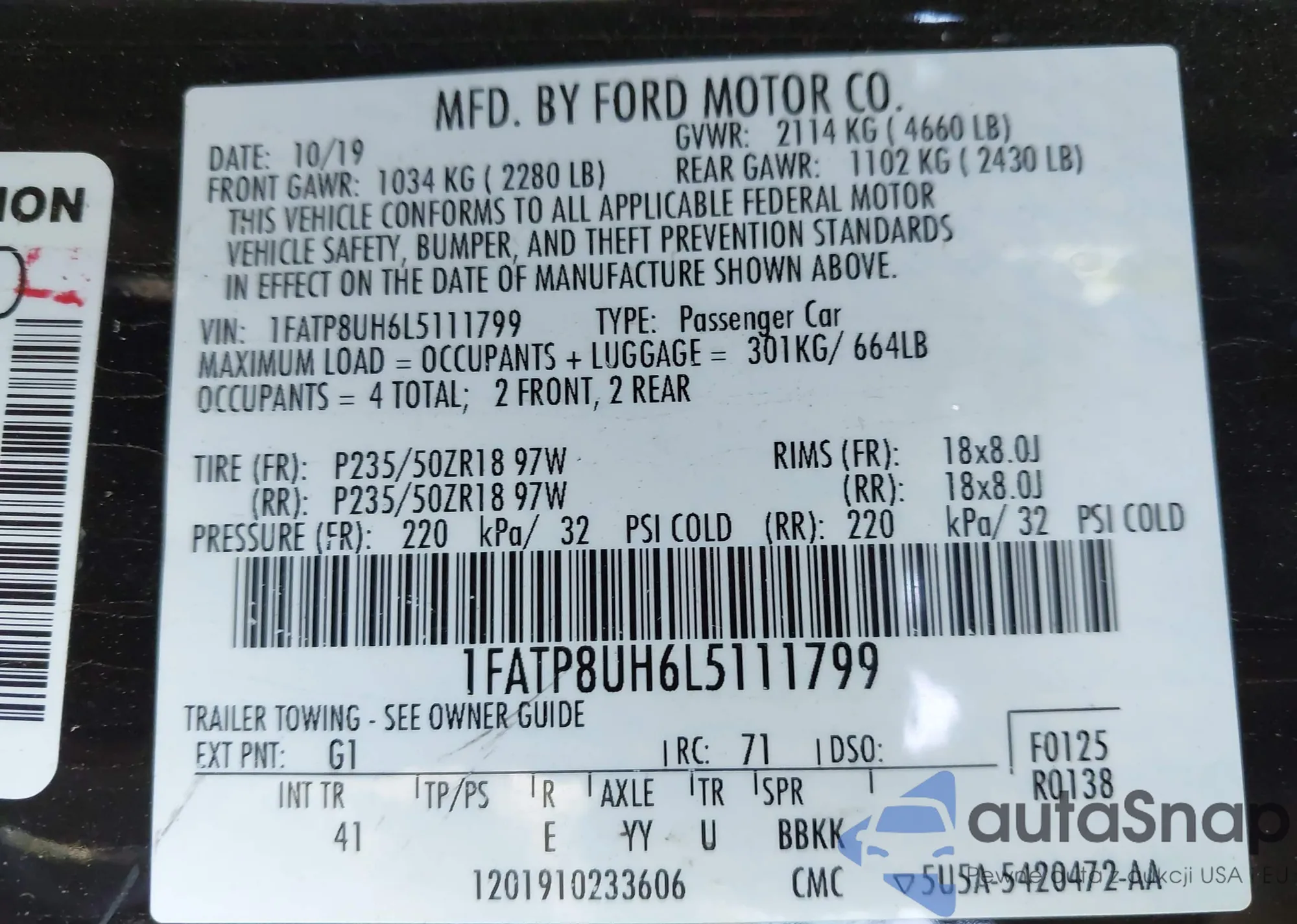 VIN: 1FATP8UH6L5111799