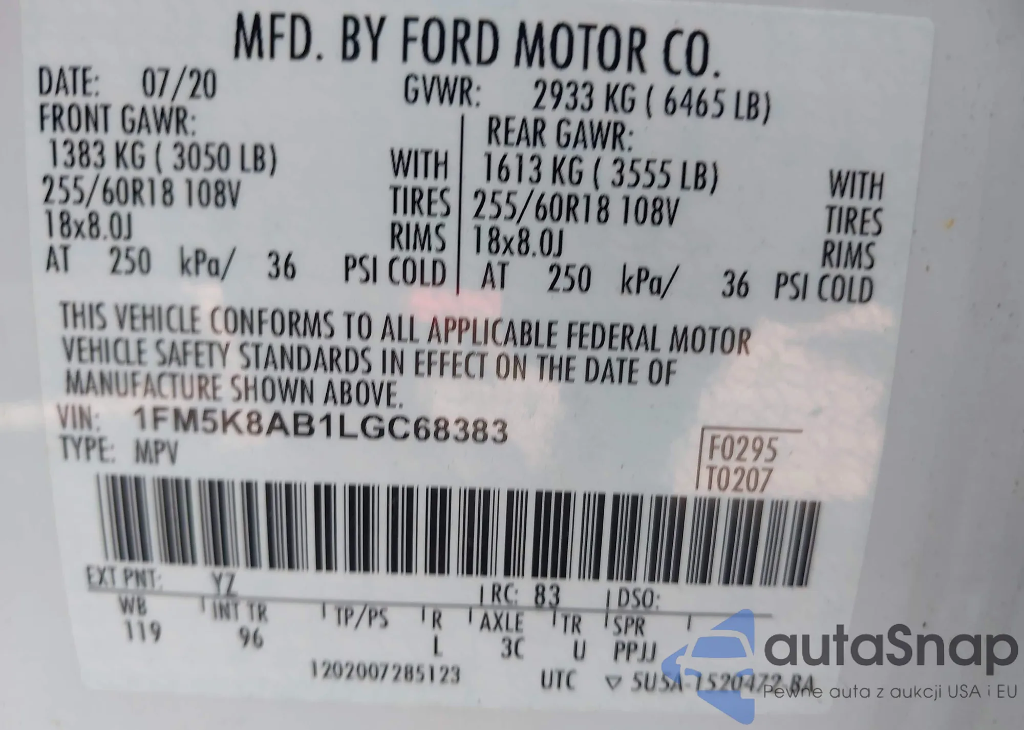 • VIN: 1FM5K8AB1LGC68383