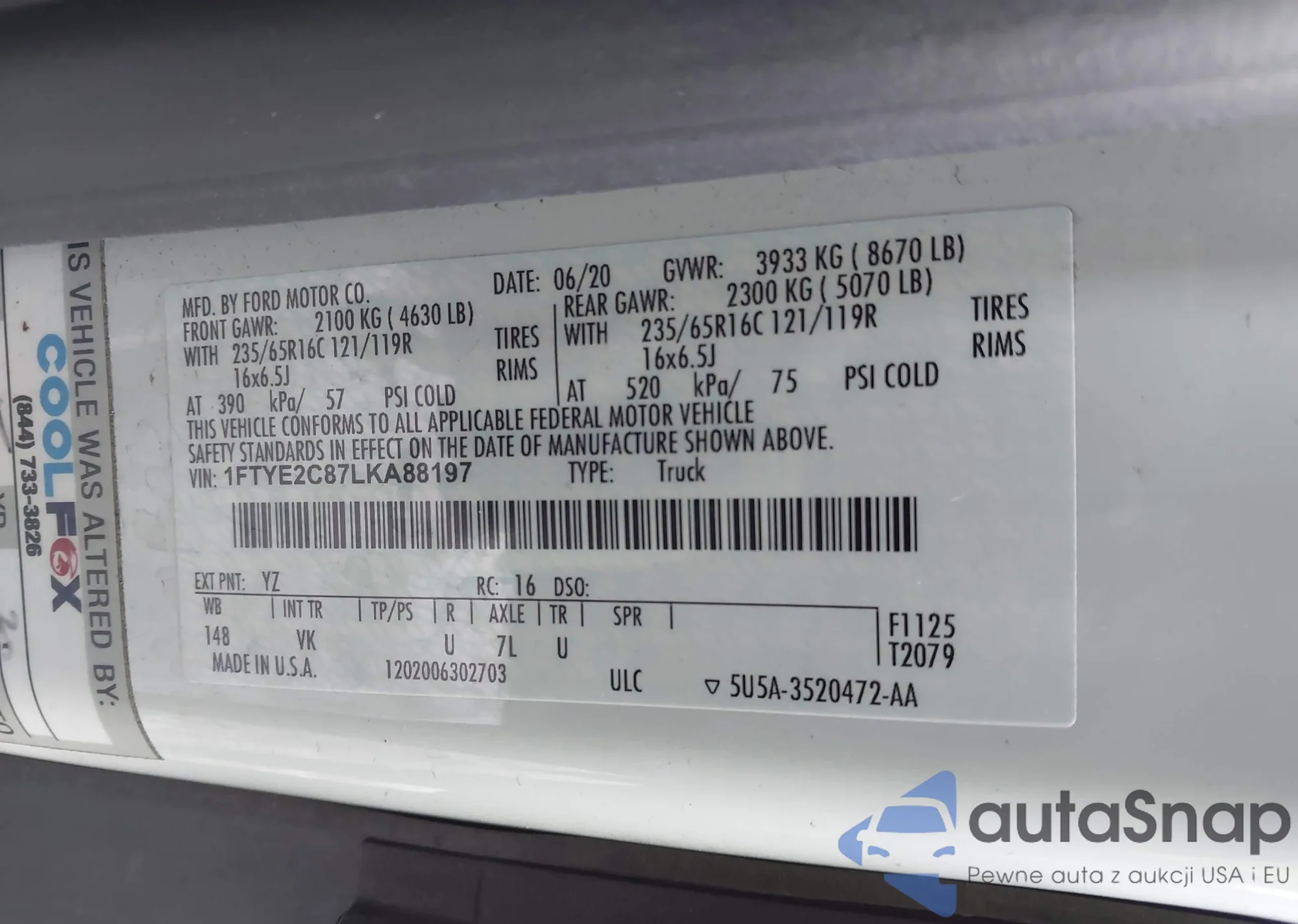 VIN: 1FTYE2C87LKA88197