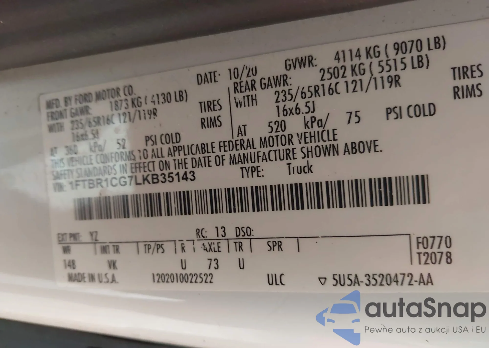 VIN: 1FTBR1CG7LKB35143