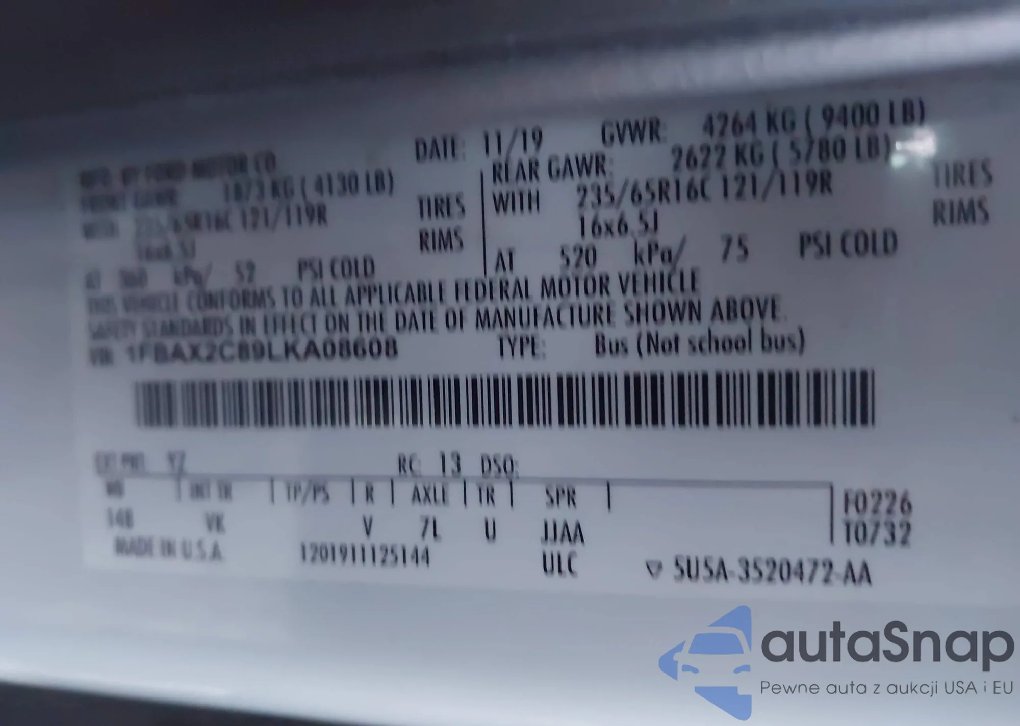 • VIN: 1FBAX2C89LKA08608