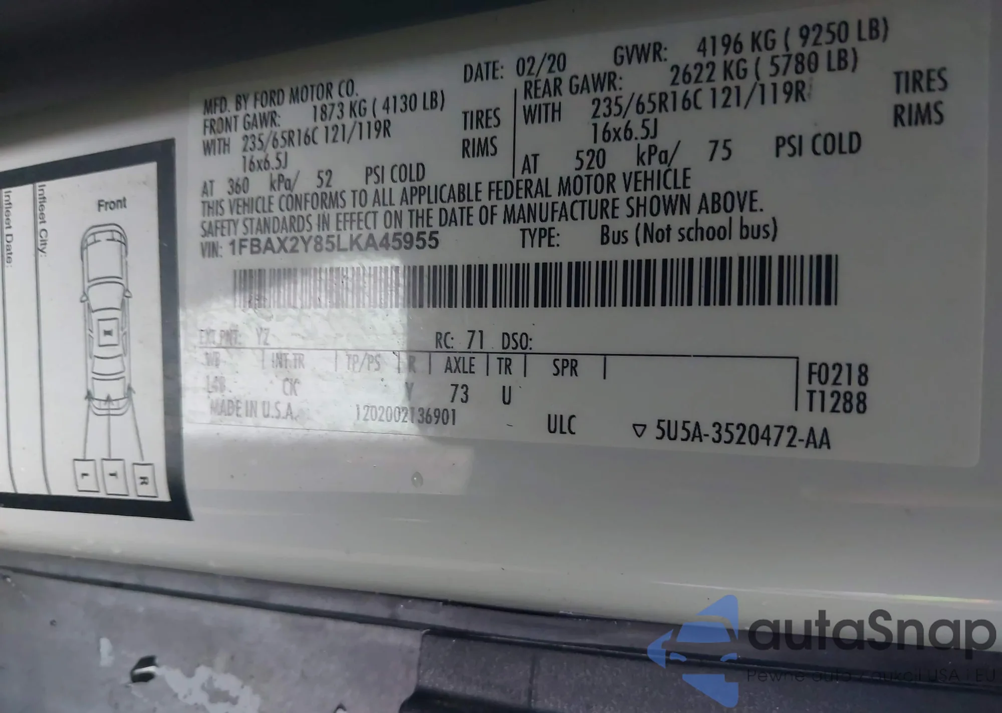 • VIN: 1FBAX2Y85LKA45955