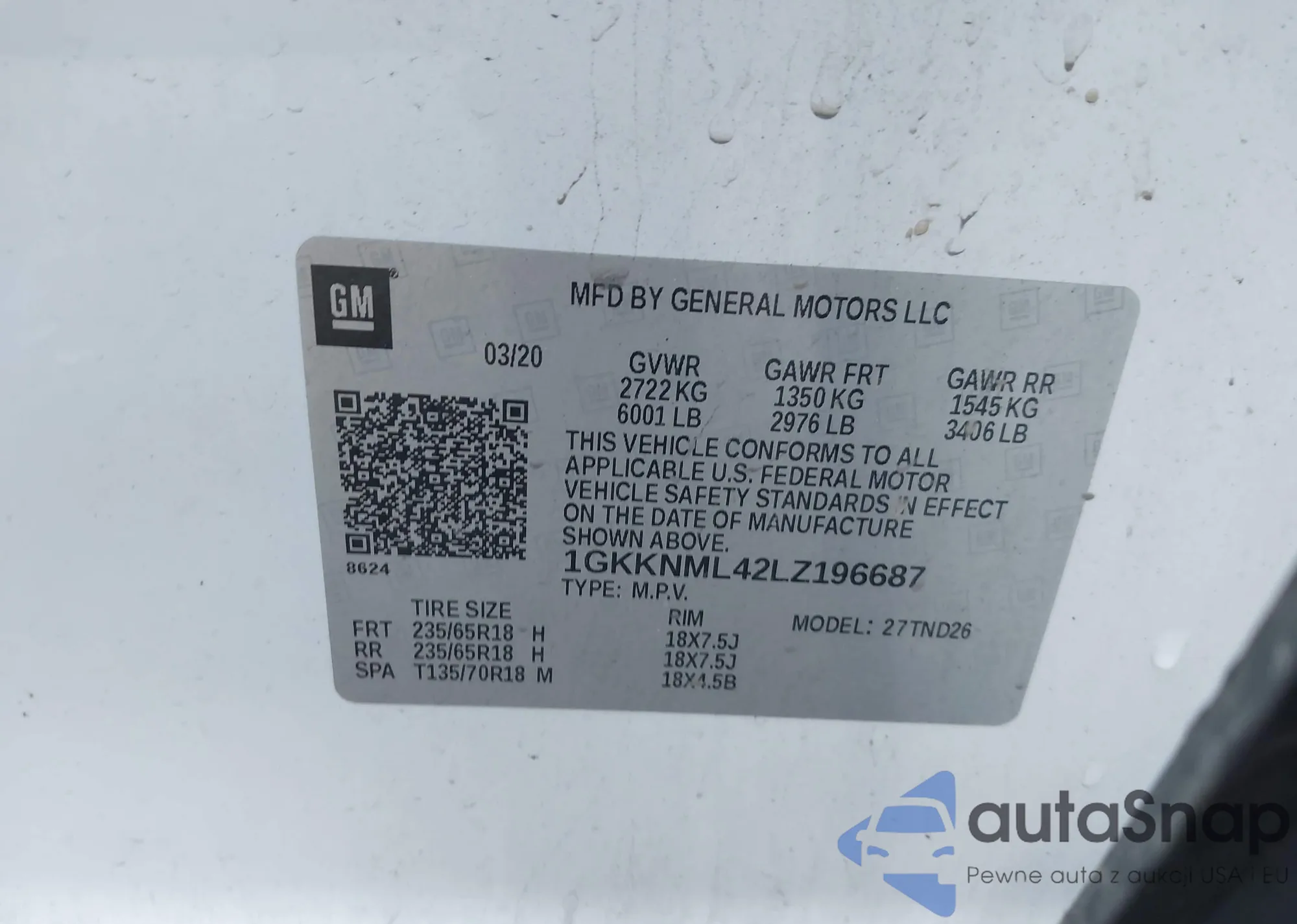 VIN: 1GKKNML42LZ196687