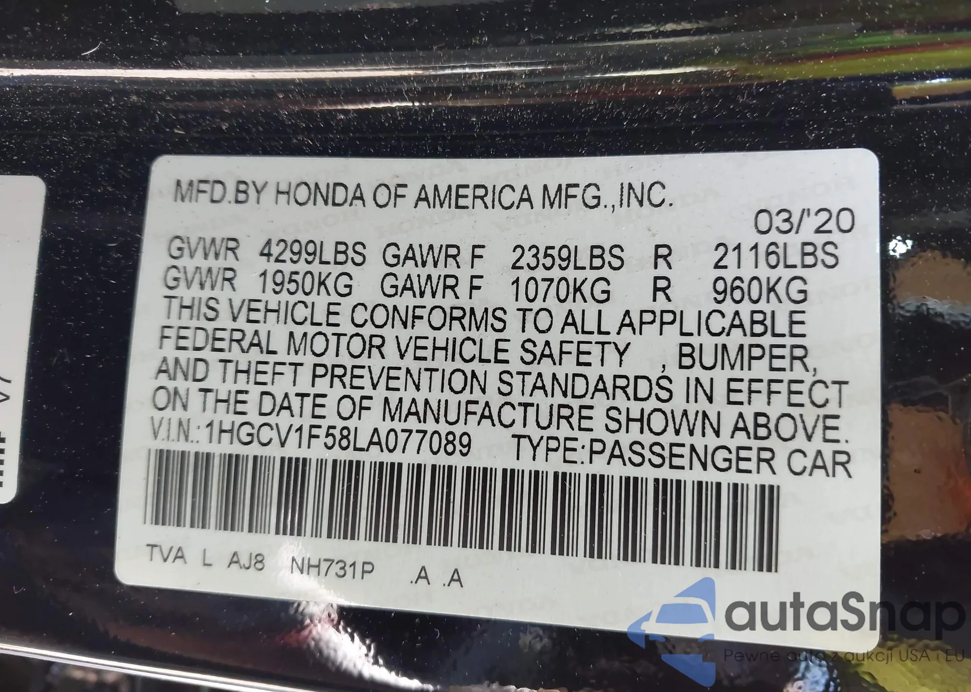 VIN: 1HGCV1F58LA077089