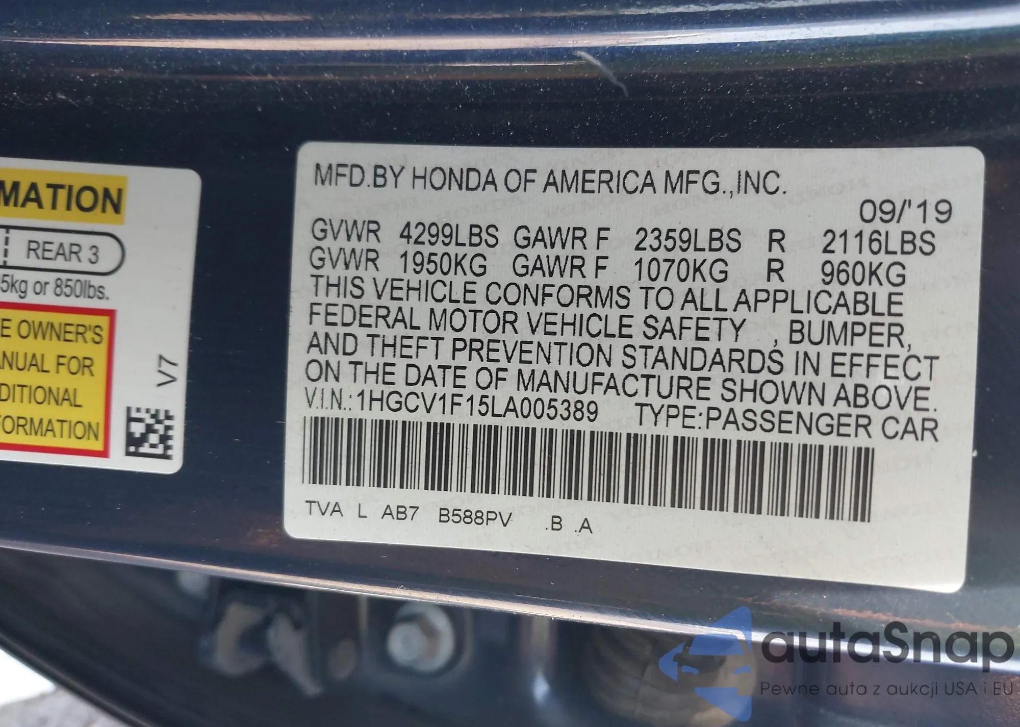 VIN: 1HGCV1F15LA005389