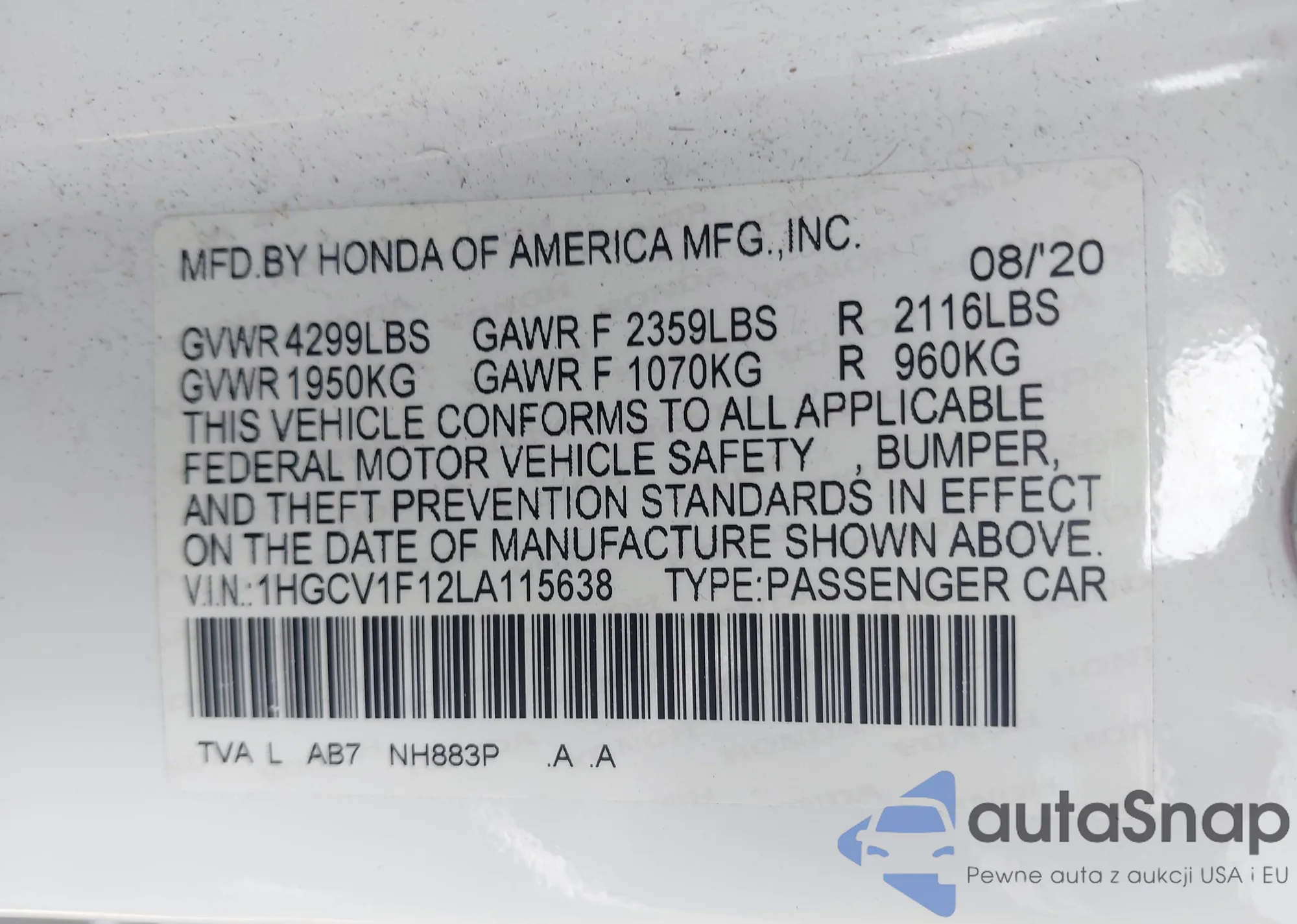 VIN: 1HGCV1F12LA115638