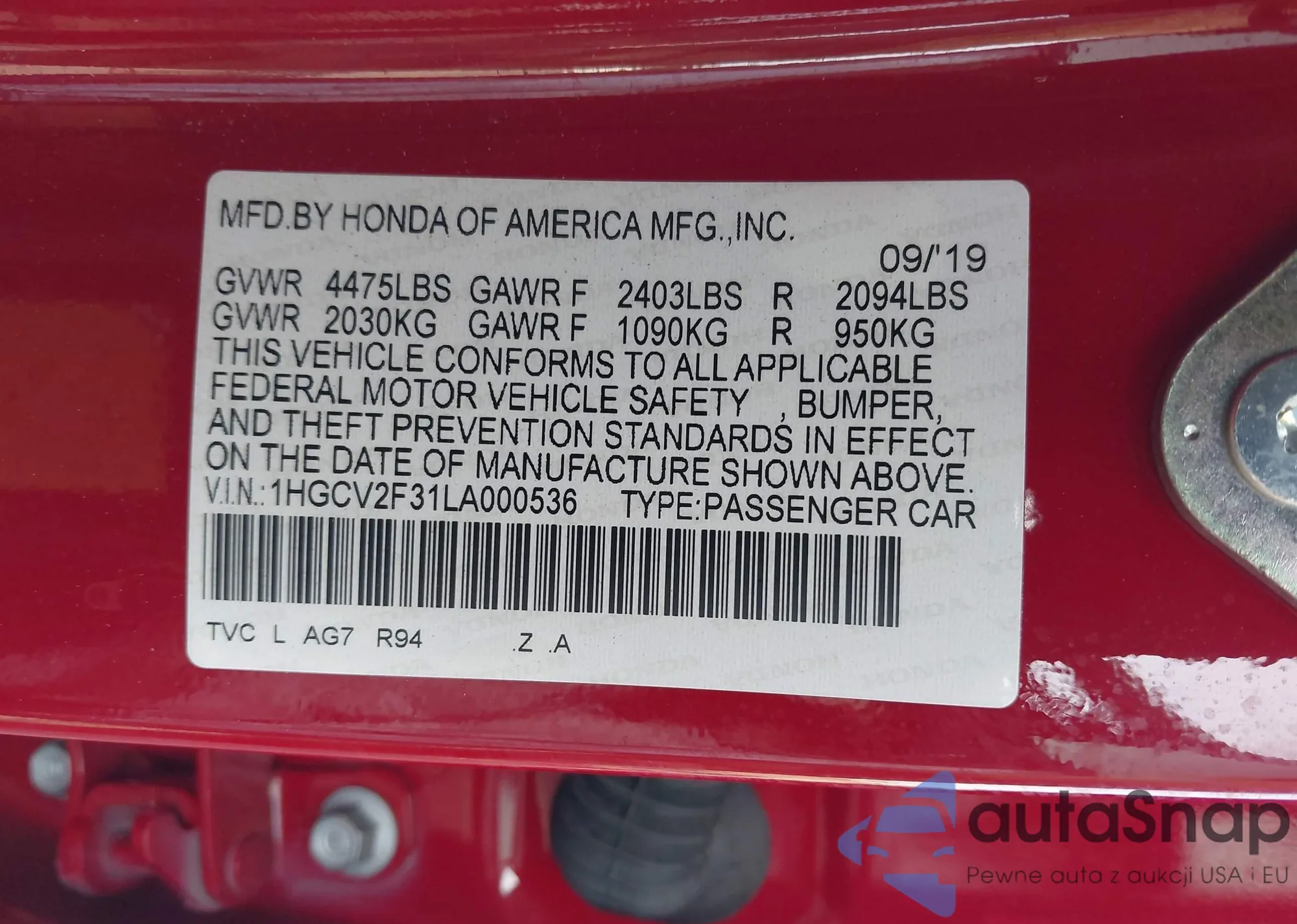 VIN: 1HGCV2F31LA000536