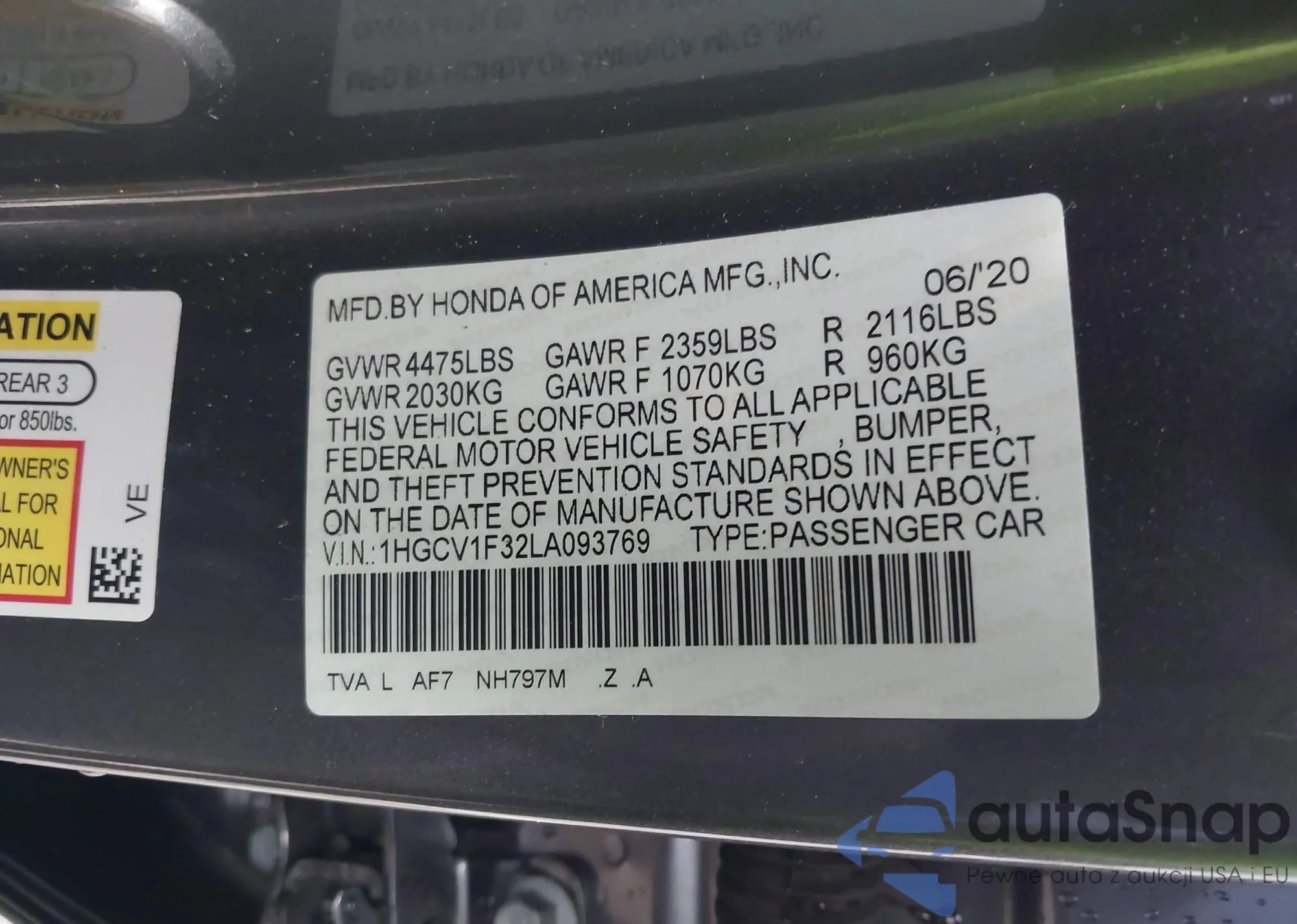 Автомобиль Honda Accord 2020 (VIN 1HGCV1F32LA093769) ранее не участвовал в торгах. Документы чистые, пробег соответствует или ниже среднего по рынку. Продаётся страховой компанией — рекомендуем покупку. Доставка в порт займет около 6–8 недель.