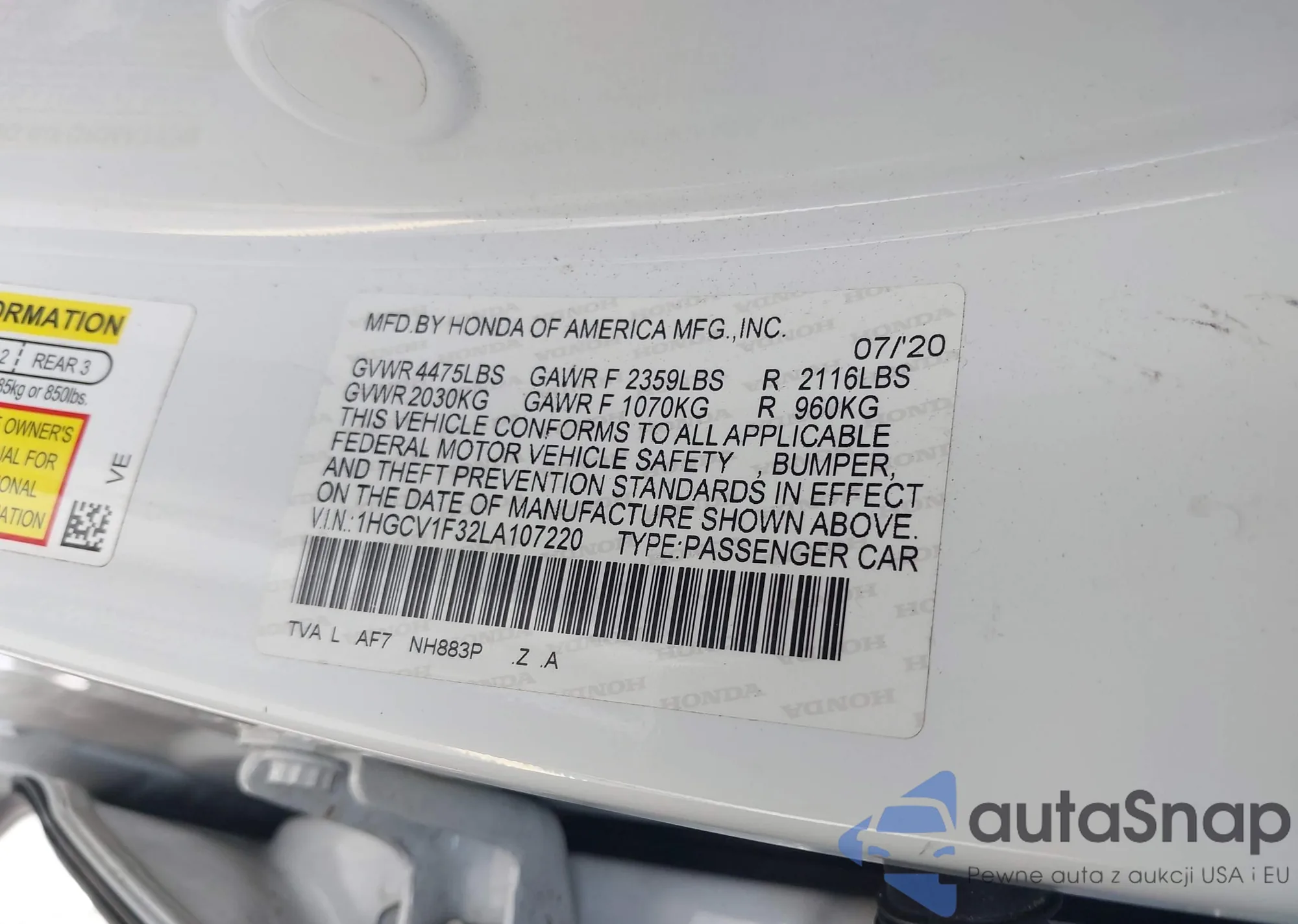 VIN: 1HGCV1F32LA107220