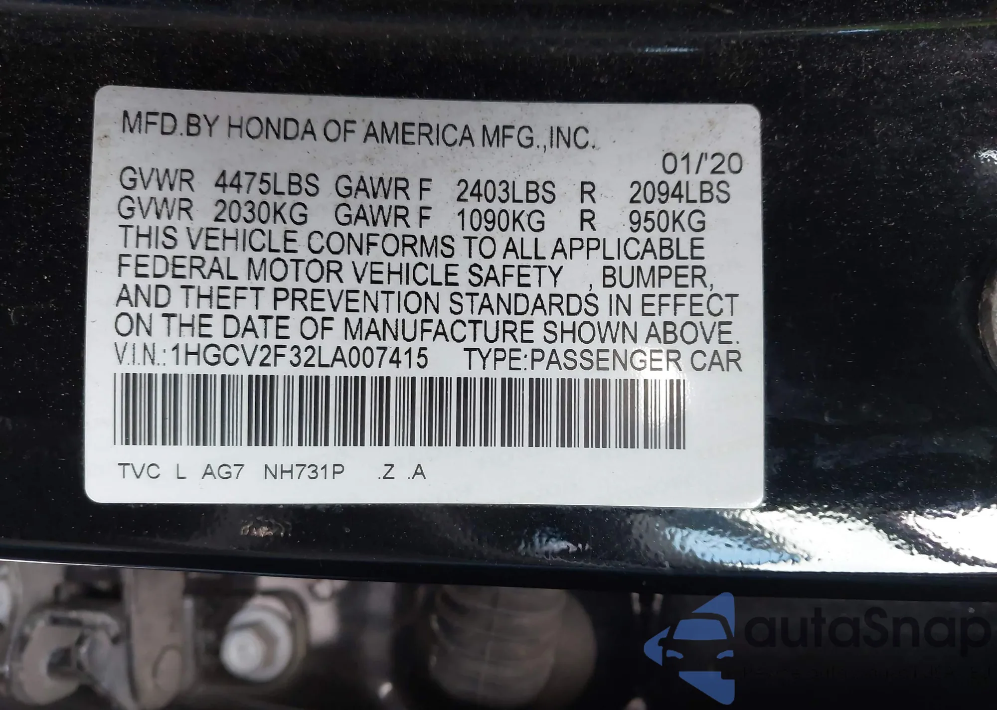 VIN: 1HGCV2F32LA007415
