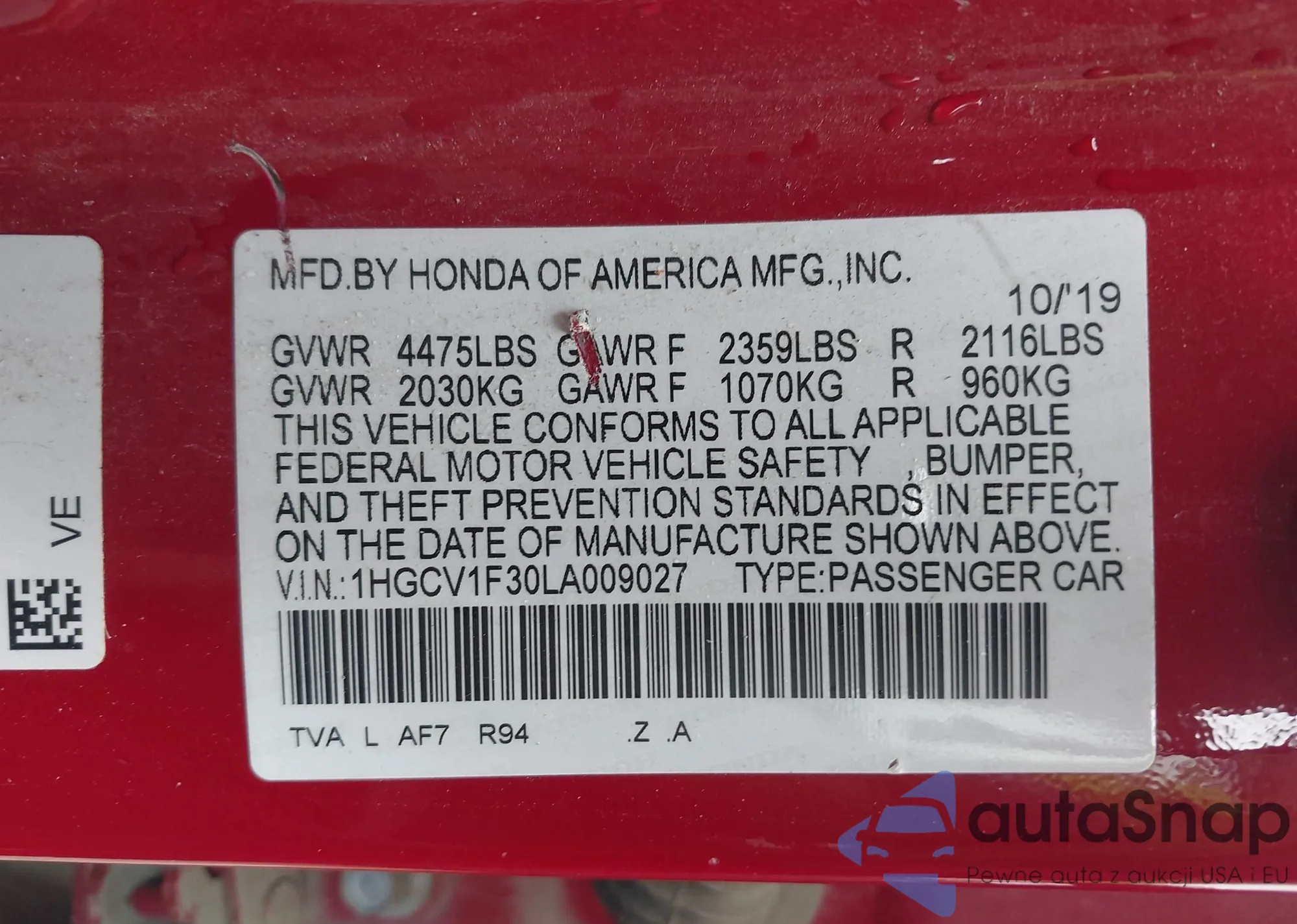 VIN: 1HGCV1F30LA009027