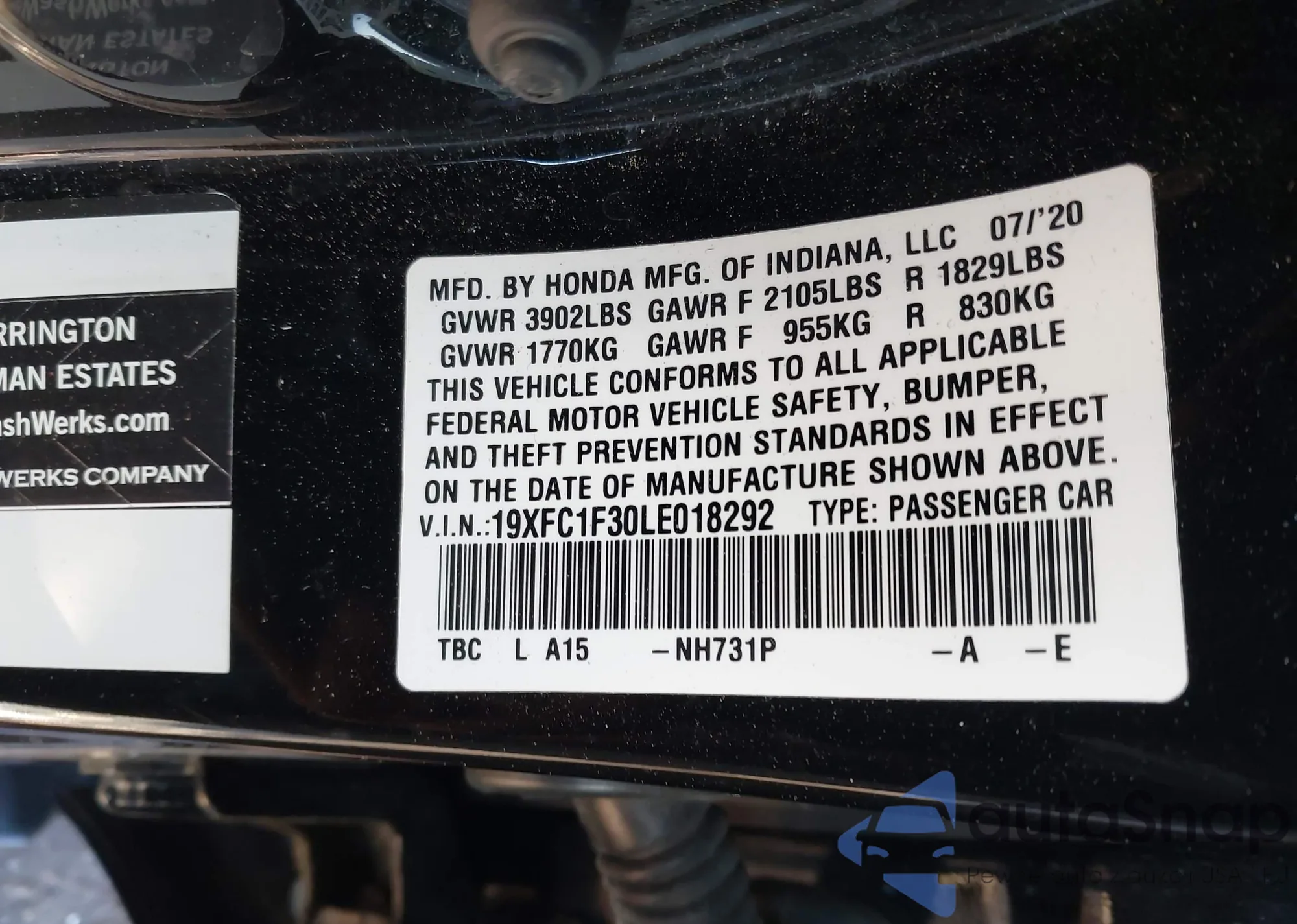 Автомобиль Honda Civic 2020 (VIN 19XFC1F30LE018292) ранее не участвовал в торгах. Документы чистые, пробег соответствует или ниже среднего по рынку. Продаётся страховой компанией — рекомендуем покупку. Доставка в порт займет около 6–8 недель.
