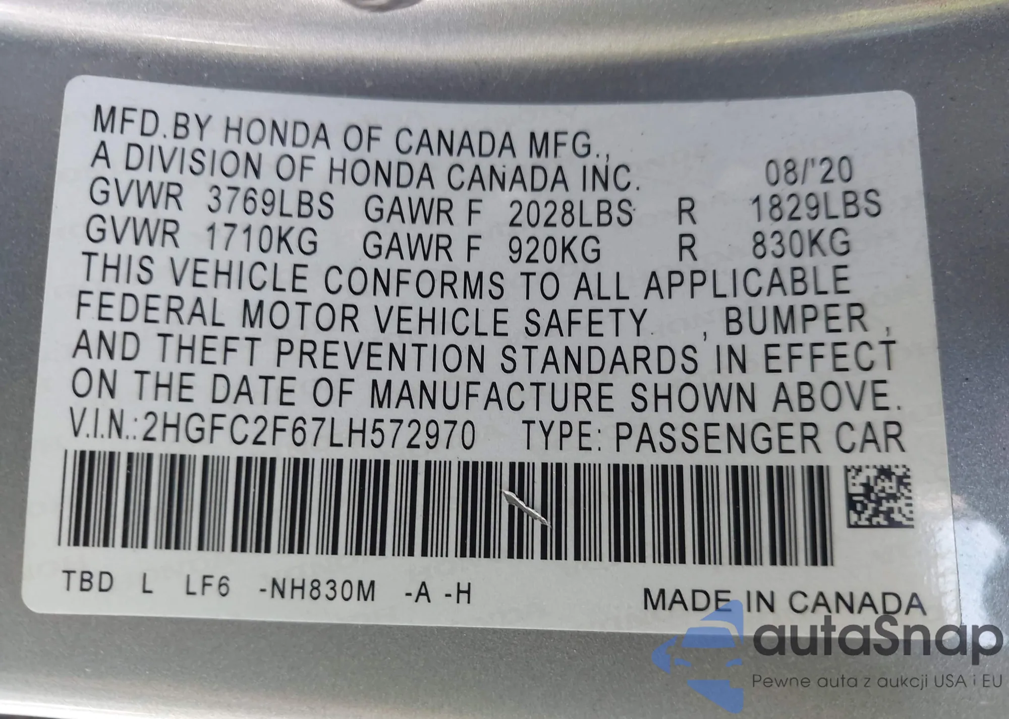 VIN: 2HGFC2F67LH572970