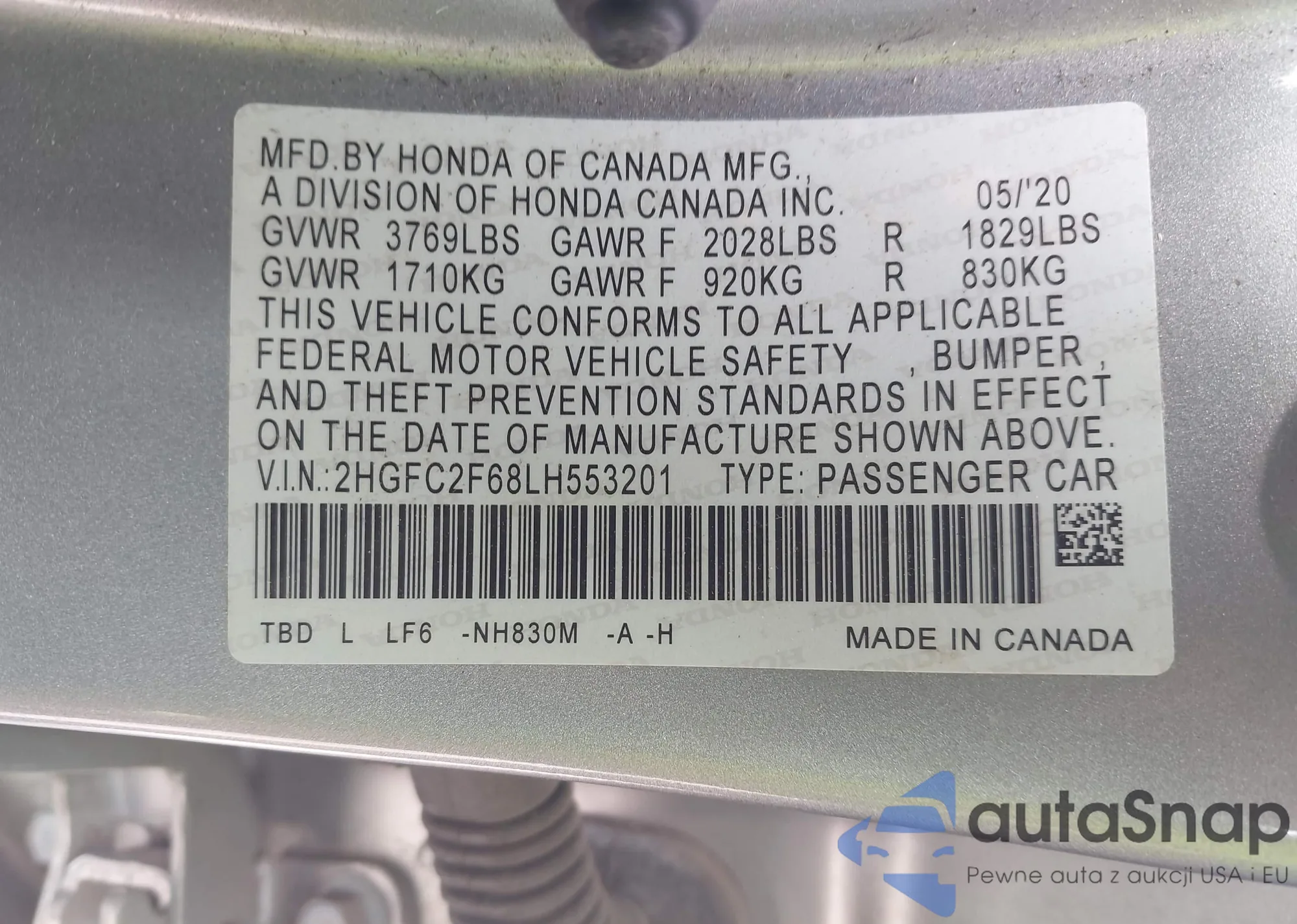 VIN: 2HGFC2F68LH553201