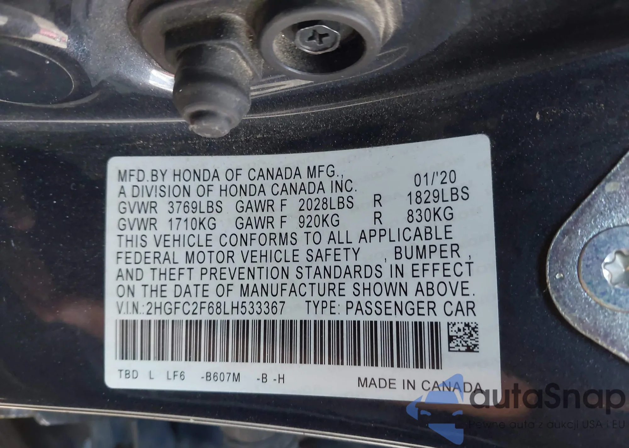 VIN: 2HGFC2F68LH533367