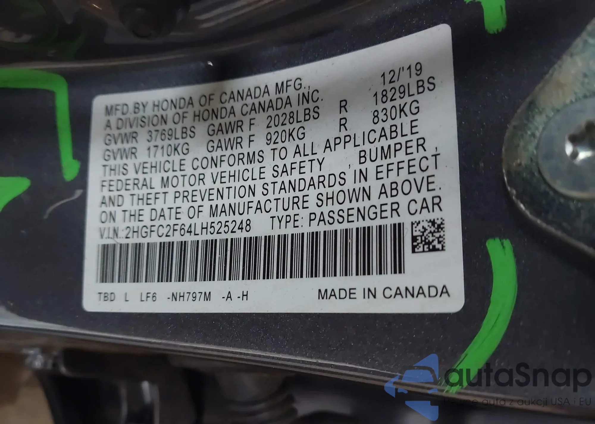 VIN: 2HGFC2F64LH525248