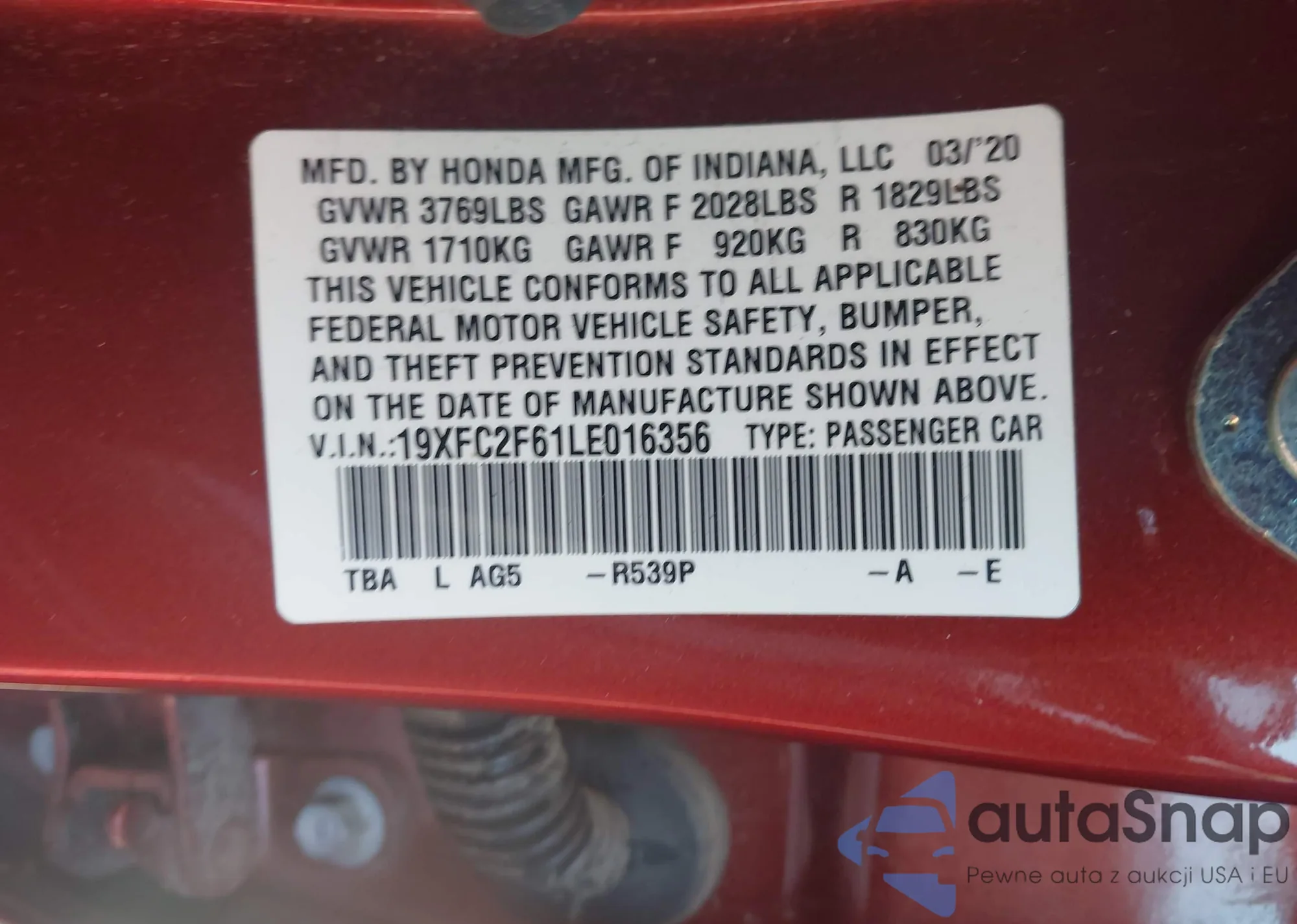 VIN: 19XFC2F61LE016356