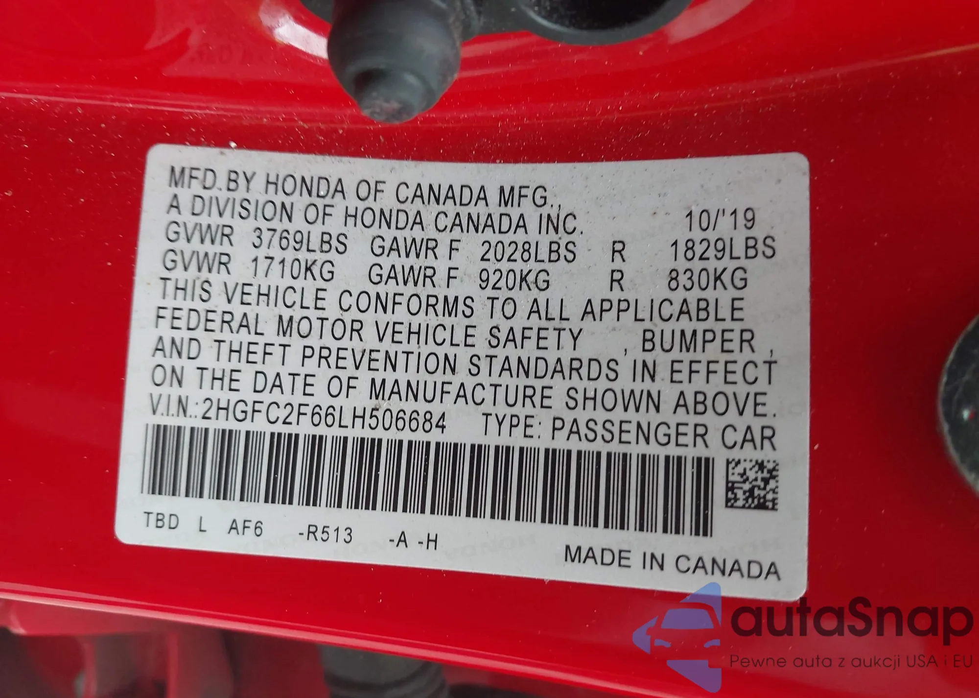 Автомобиль Honda Civic 2020 (VIN 2HGFC2F66LH506684) ранее не участвовал в торгах. Документы чистые, пробег соответствует или ниже среднего по рынку. Продаётся страховой компанией — рекомендуем покупку. Доставка в порт займет около 6–8 недель.